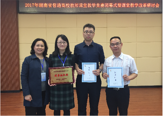 校园网讯 10月28日,在2017年湖南省普通高校教师课堂教学竞赛的现场决赛中,我校入围参赛的音乐学院刘长旭老师获文科二组一等奖,外语学院湛朝虎老师获外语组一等奖。同时,学校荣获优秀组织奖。