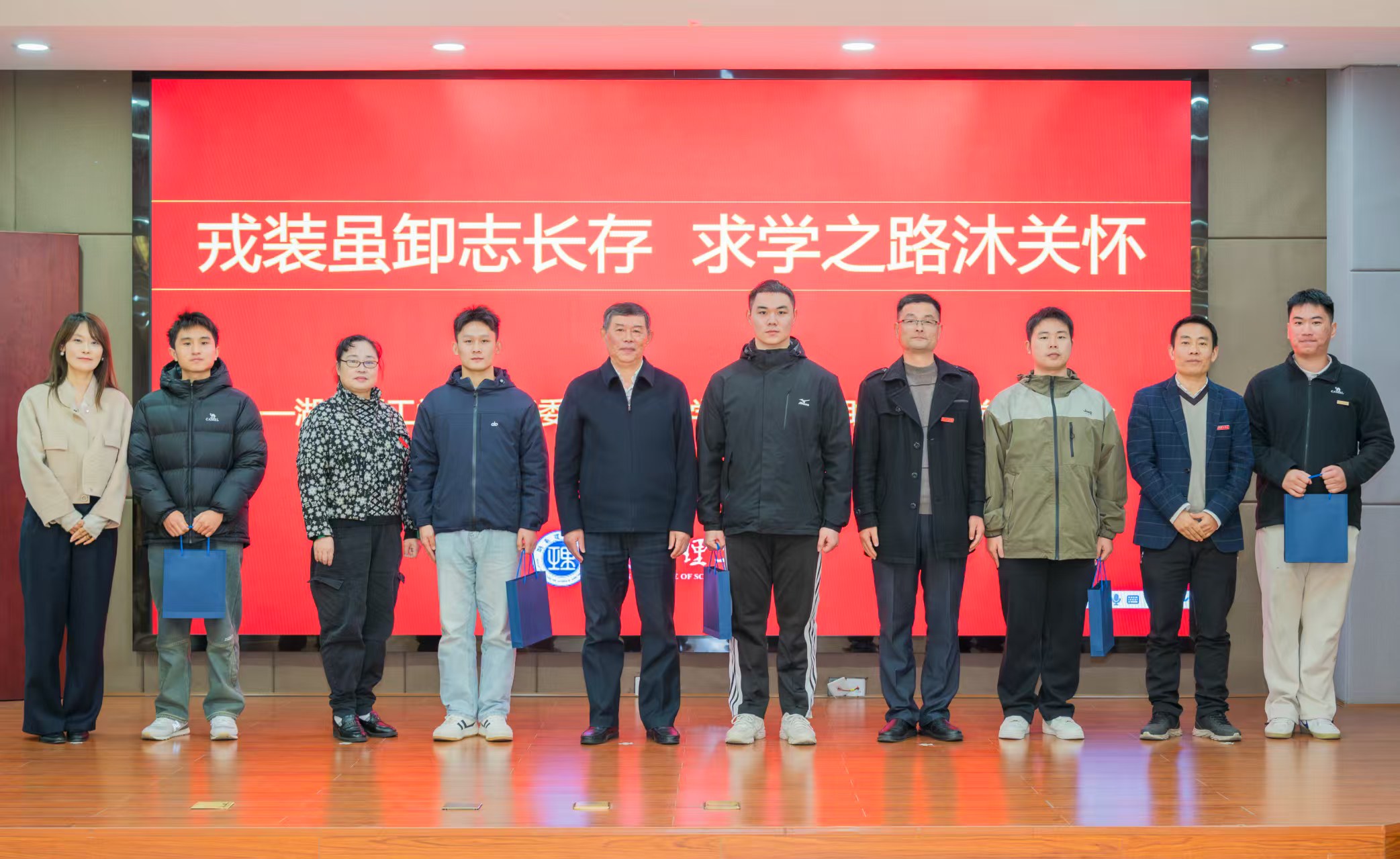 刘亦工在总结中高度赞誉退役学生的纪律意识与责任担当,勉励他们永葆军人本色,将部队优良作风与专业学习深度融合,在土木建筑领域深耕细作,为国家基础设施建设高质量发展贡献青春力量。活动尾声,与会领导为退役专升本新生佩戴校徽、赠送定制纪念品,寄予逐梦期许。