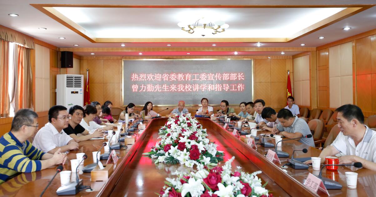 校园网讯9月18日,省委教育工委宣传部部长曾力勤、副调研员崔恒源一行来校,就学校加强和改进思想政治教育工作进行专门调研。党委书记李明、党委副书记邱绍雄、副校长徐小立分别出席了调研期间的有关活动。