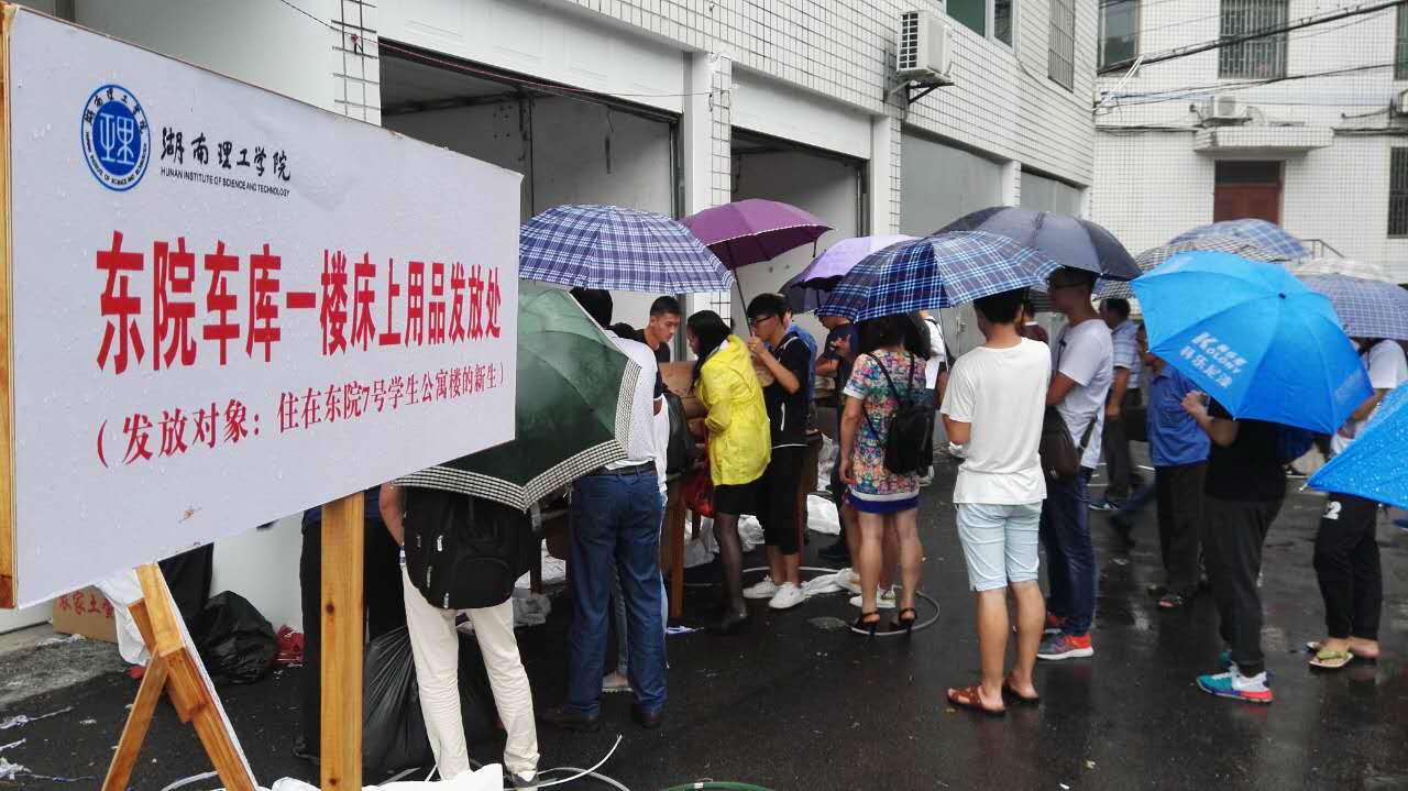 在各迎新点,迎新工作均已准备就绪,并安排了专人值班。在学校后勤处行李物品发放处,前来领取床上用品的新生排起了长龙。为确保新生及时领到行李物品,学工部、计财处、后勤处等职能部门周密安排,热情服务。到发稿时截止,已为新生发放床上用品近2000套。(宣传部)