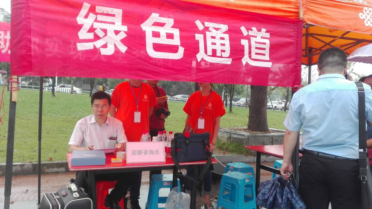 走出热闹的社团迎新队伍后,便会发现显眼的“绿色通道”。学校对被录取入学、家庭经济困难的新生,一律先办理入学手续,而后根据实际情况进行补助。现场的志愿者们,也在热情地回答着新生和家长们的咨询。 (学生记者/刘惠)
