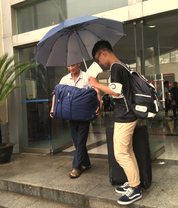 家长们总是不放心自家孩子独自出远门,总是要全程陪伴,总是千叮咛万嘱咐,希望孩子能照顾好自己。所谓“爱得深沉”,大抵就是如此。(学生记者/欧帅 罗艳)