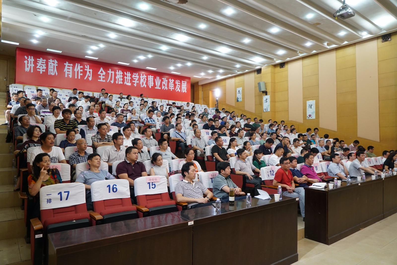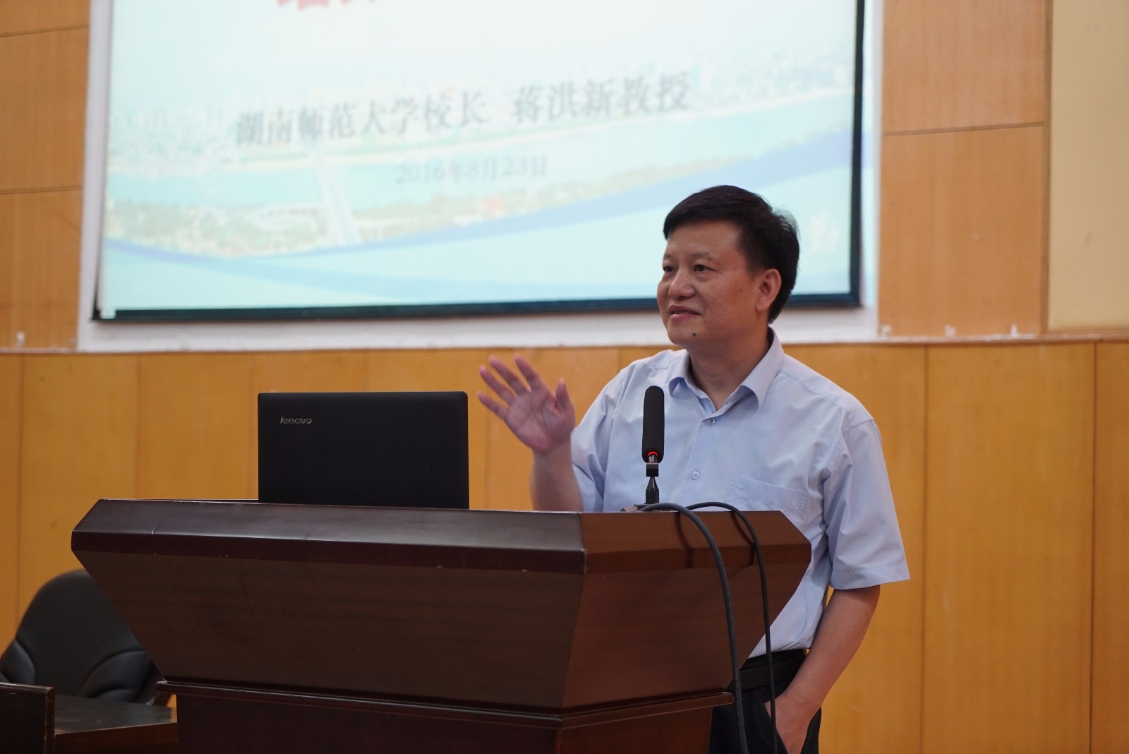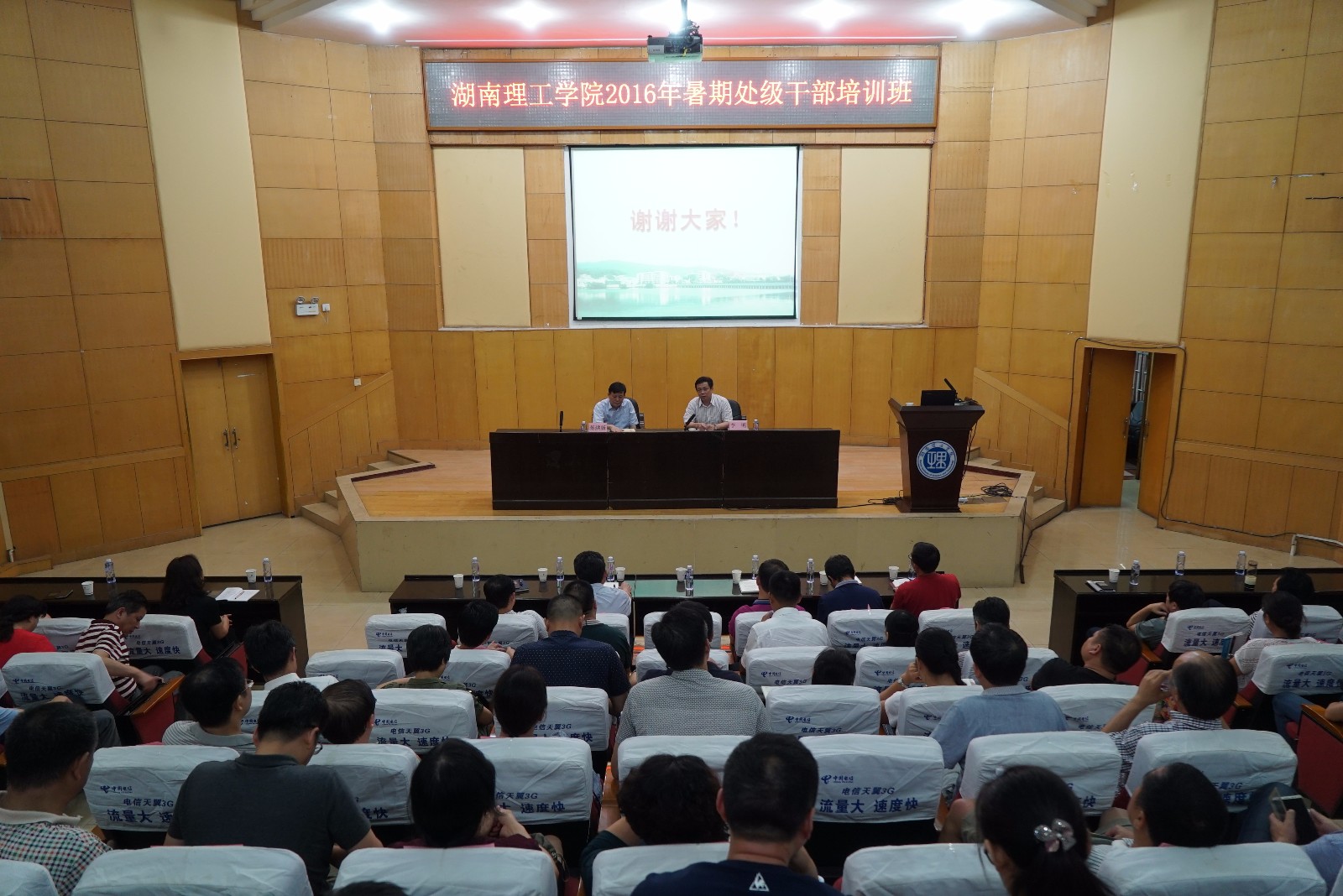 校园网讯8月23日,我校2016年暑期处级干部培训班在图书馆学术报告厅举行,培训班以“讲奉献、有作为,全力推进学校事业改革发展”为主题。全体校领导出席,全校副处级以上干部参加培训。省教育厅原副厅长申纪云、湖南师范大学校长蒋洪新应邀做主题报告,校党委书记李明主持报告会。
