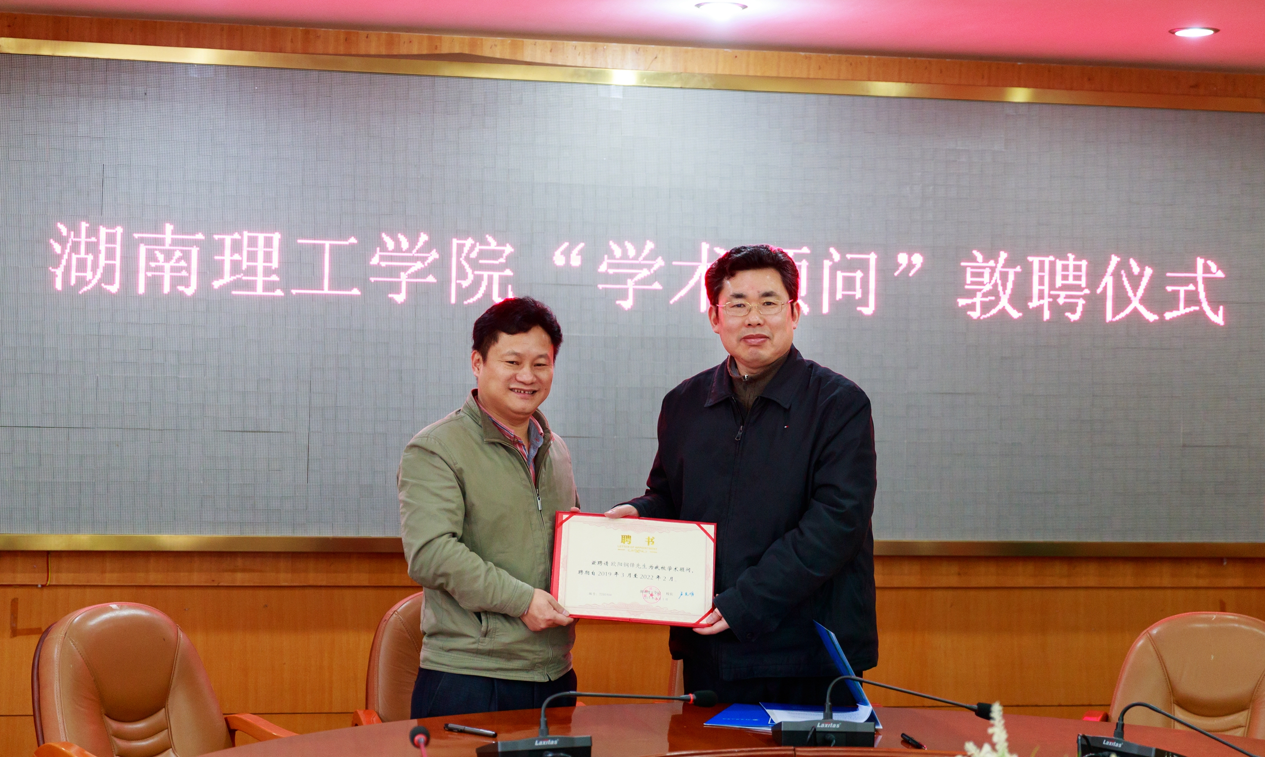 卢先明代表学校与欧阳钢锋教授进行签约,并向他颁发了学术顾问聘书。