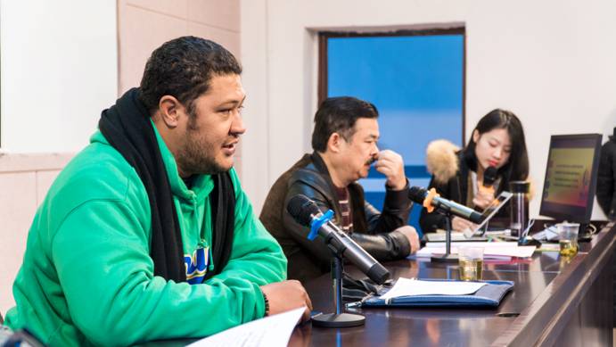 中体项目负责人王超在仪式上致辞。他首先对萨摩亚来华骨干团队表示了热烈欢迎,并且祝愿萨摩亚团体操表演骨干成员都能学有所成,在太平洋运动会开闭幕式上有所贡献。同时,真诚地希望中华民族悠久的历史文化、能够给萨摩亚朋友们留下美好的记忆,共同分享湖南体育文化的无限魅力。