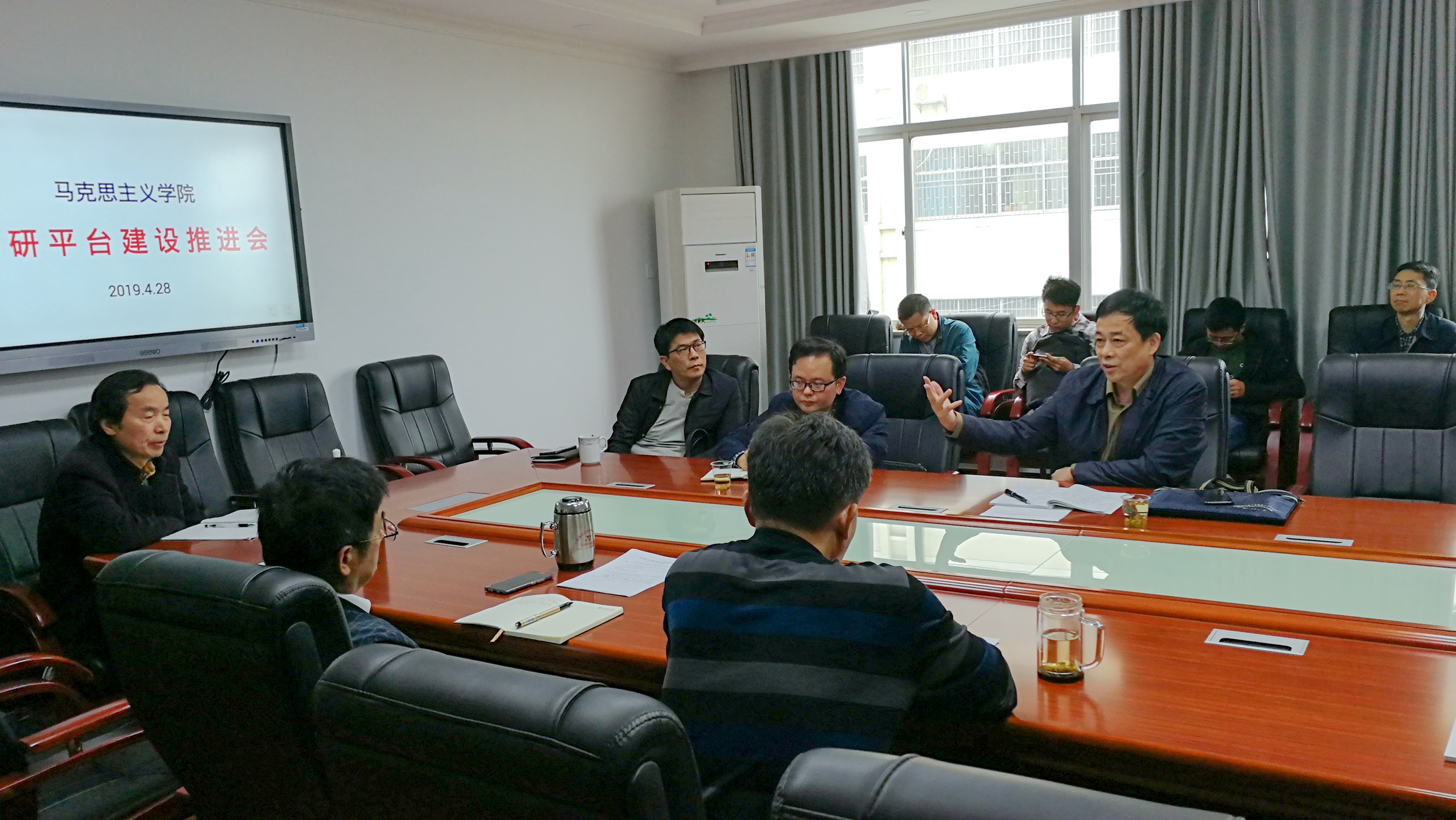 校园网讯 4月28日,马克思主义学院科研平台建设推进会举行,党委书记李明出席,人文社科处、马克思主义学院相关负责人及学院全体教师参加会议。