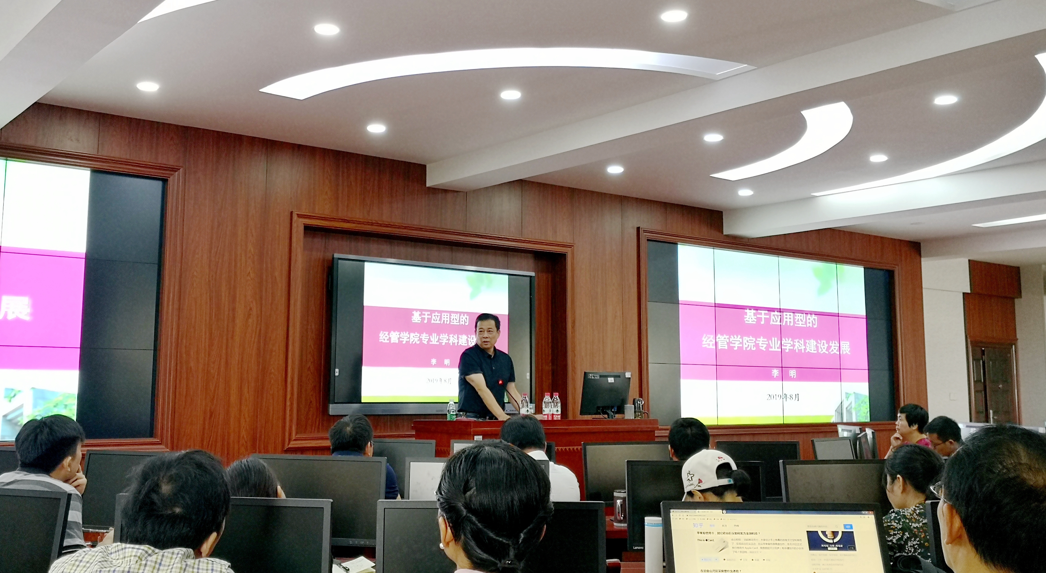 校园网讯 8月31日上午,经管学院举行2019年下学期开学工作会议,党委书记李明出席会议并作了主题为《基于应用型的经管学院专业学科建设发展》的主题报告。经管学院全体教师及新进博士、青年教师参加了学习。