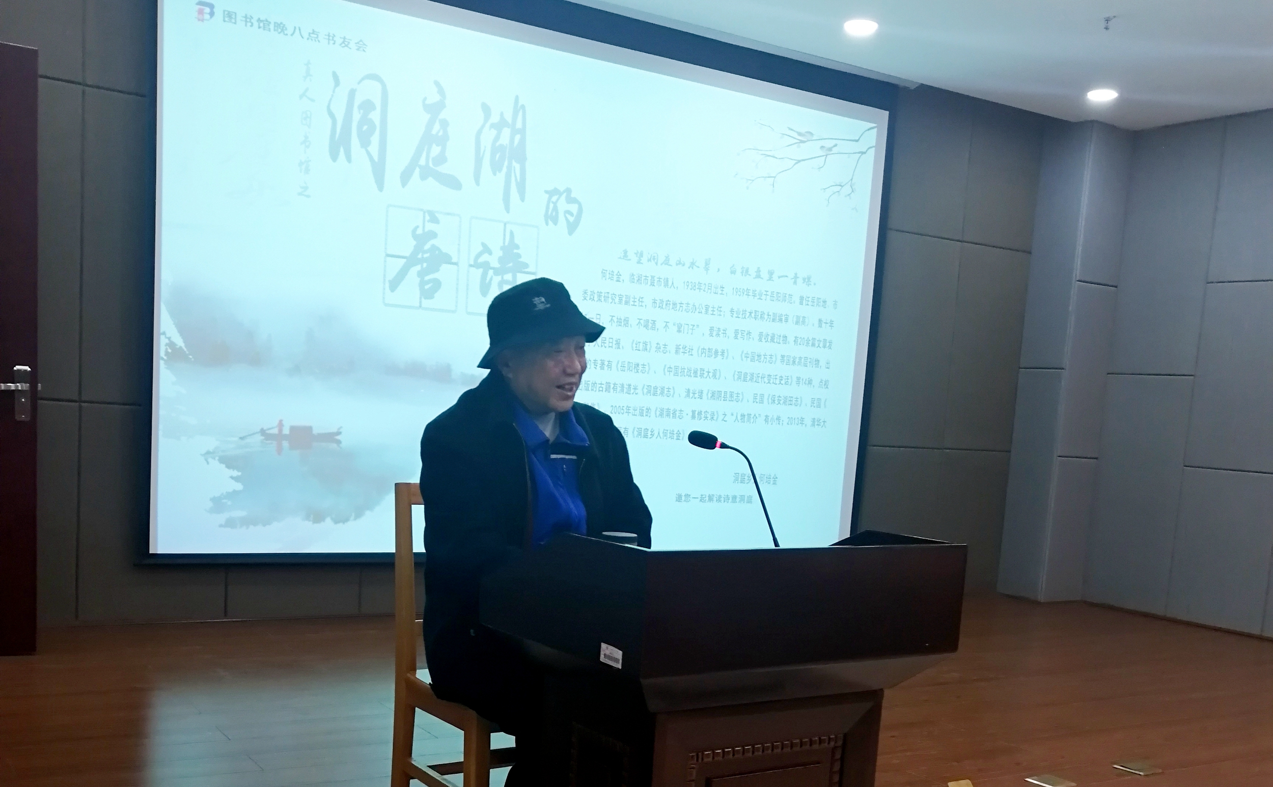 湖湘才子何林福先生走进真人图书馆,与师生读者一起来了场“与天下岳阳楼的对话”。洞庭乡人何培金带来“洞庭湖的唐诗”讲座,为师生解读诗意洞庭的文化精华。潇湘晨报、长江信息报《地理志》专栏作家、洞庭湖流域地理文化学者张小章先生来馆,开启一段“汨罗江寻源”之旅。岳阳市作家协会副主席潘刚强和东洞庭湖国家自然保护区管理局总工程师姚毅两位嘉宾从不同视角“对话洞庭水中精灵”,让读者认识到人与自然和谐共生的意义。
