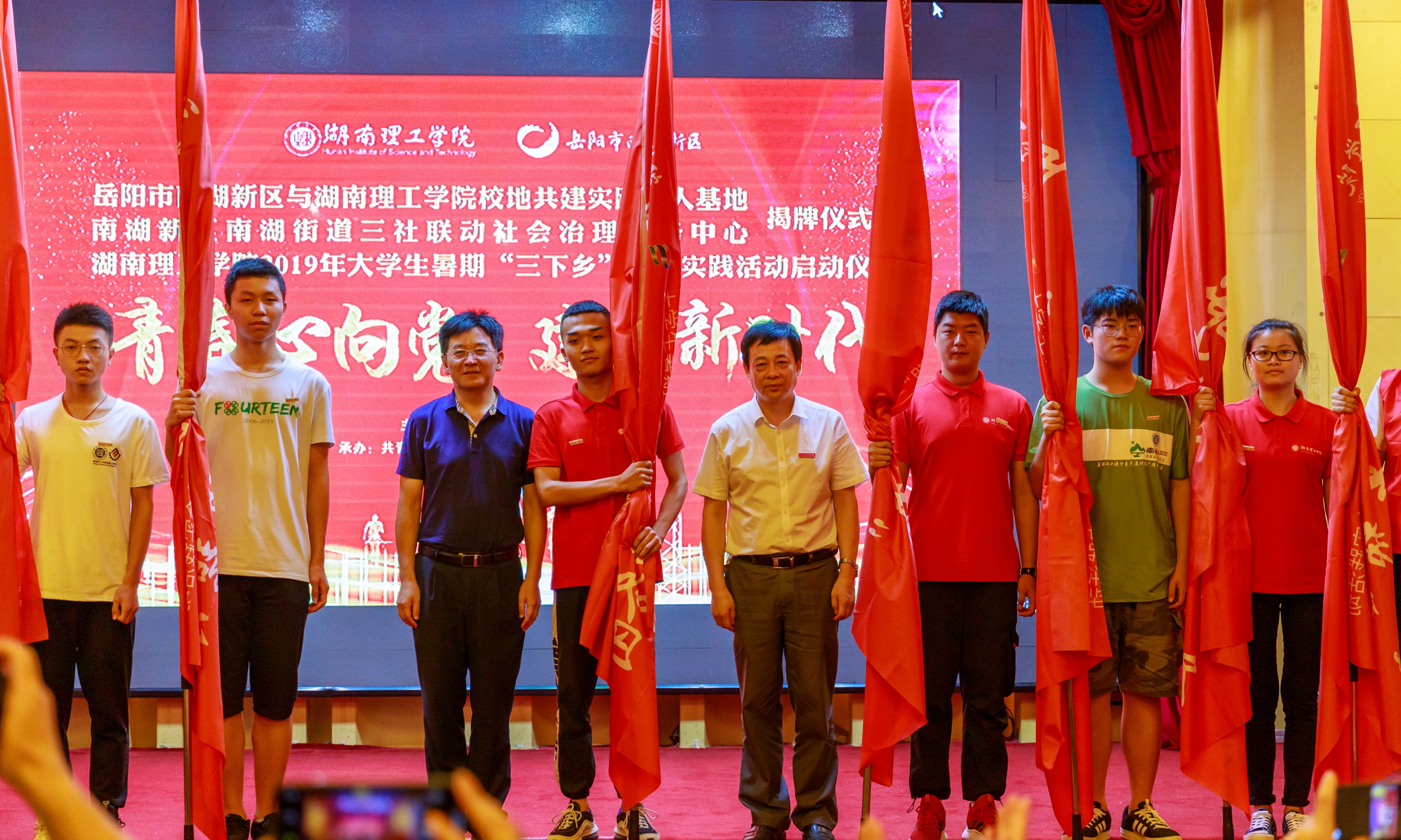 7月11日,湖南理工学院与岳阳市南湖新区校地共建实践育人基地暨学校2019年大学生暑期“三下乡”社会实践活动启动仪式举行。