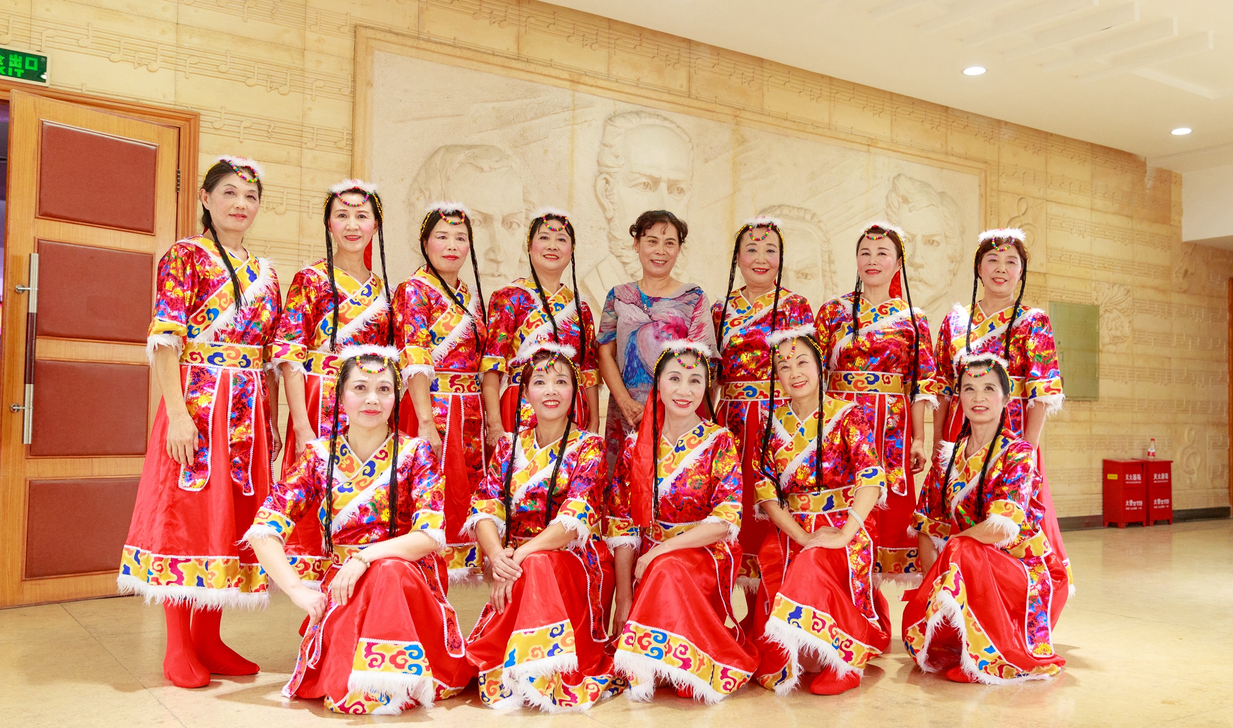 离退休老同志们组织编排表演舞蹈,为新中国成立70周年喝彩。