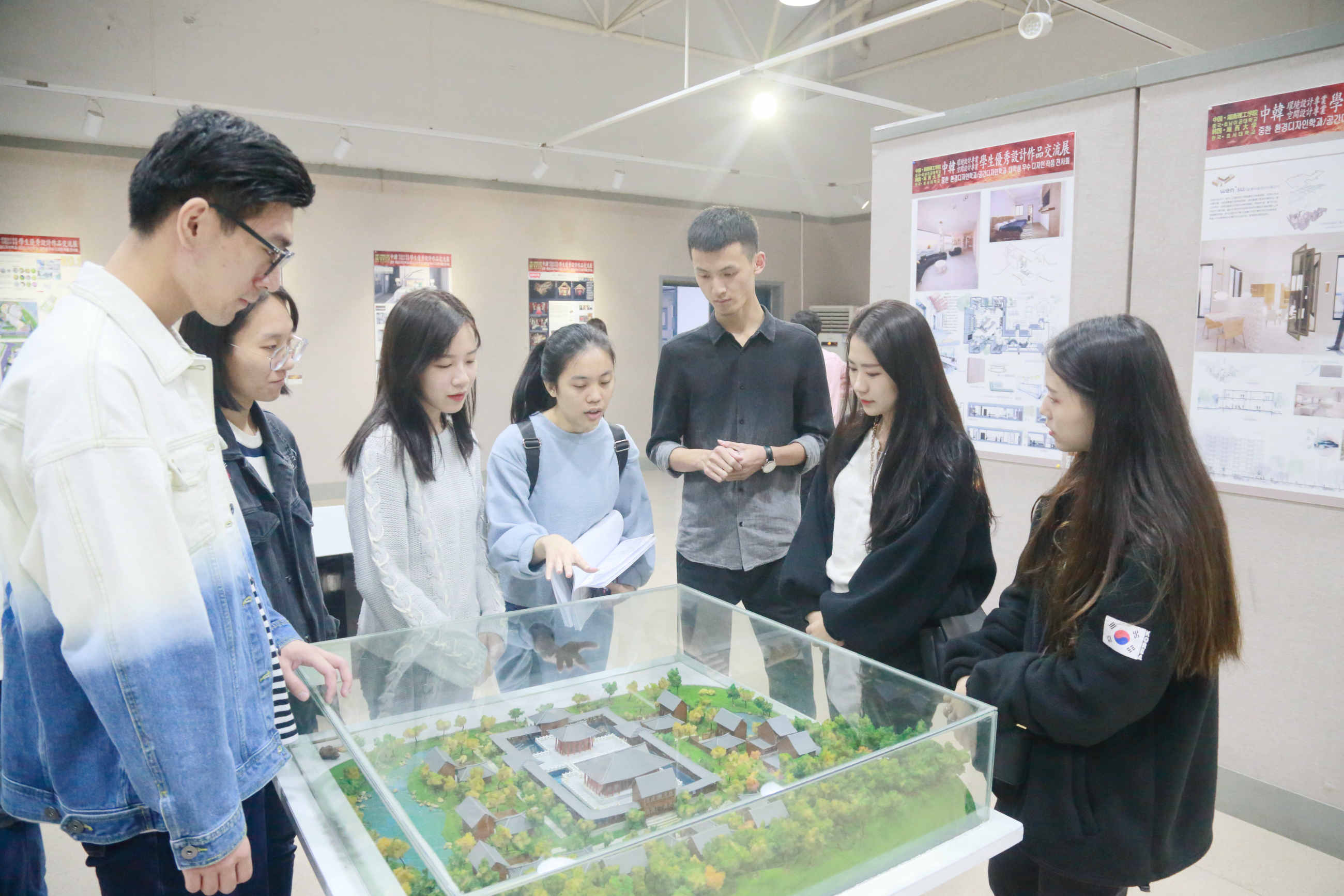 展览共展出了中韩两所大学68件学生作品,涵盖了空间设计、景观设计、室内设计、雕塑等。