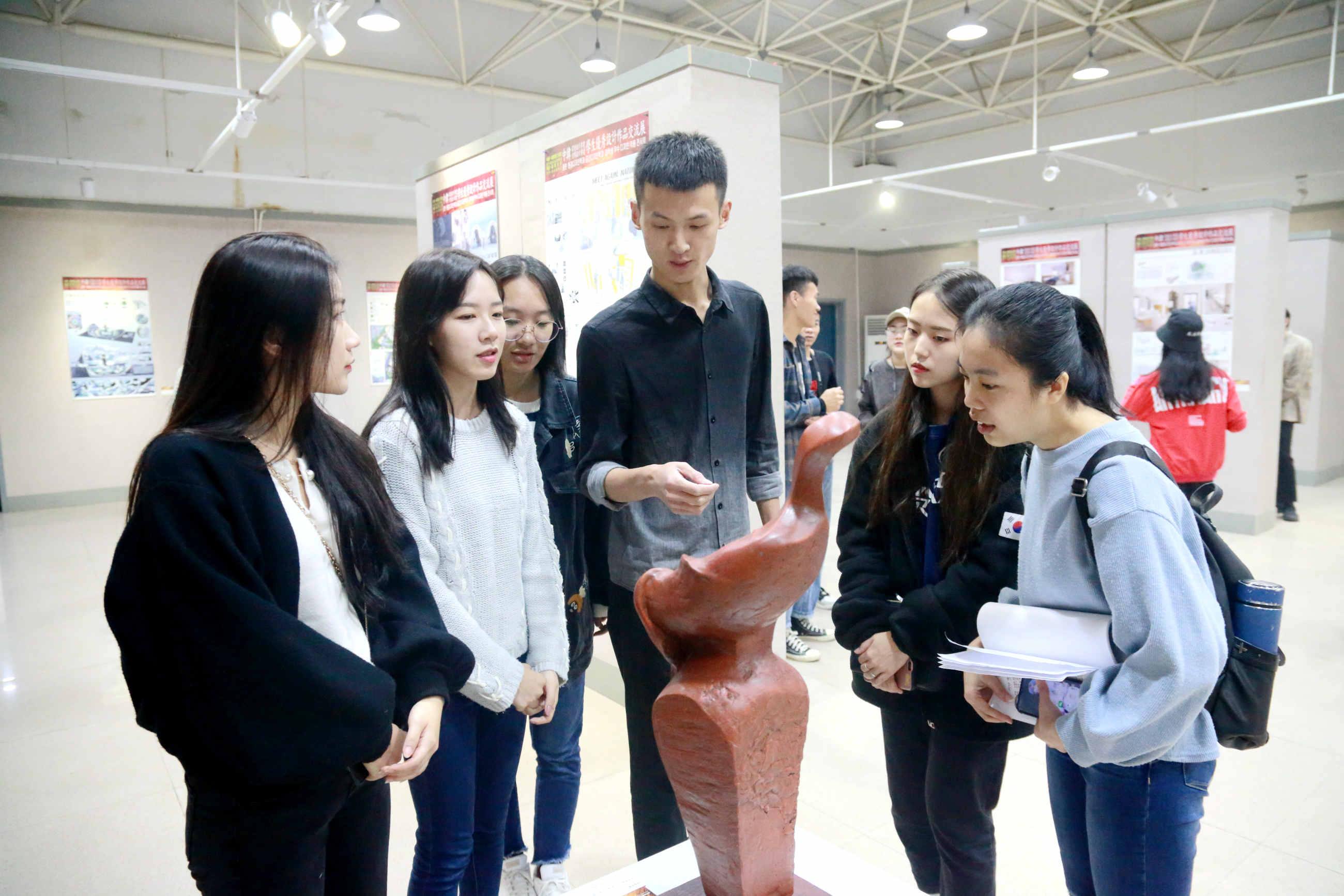 中韩两国师生在艺术作品交流展中互相学习共同进步。