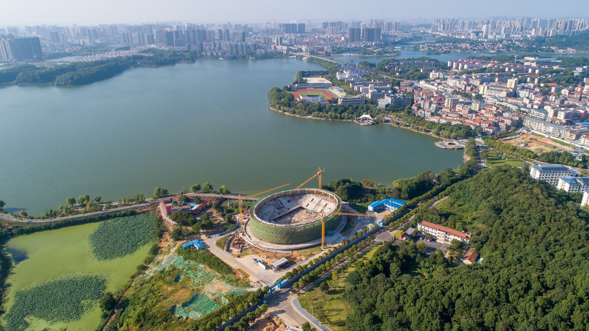 位于南湖畔的2万平方米新田径场已完成基本建设(9月1日航拍)