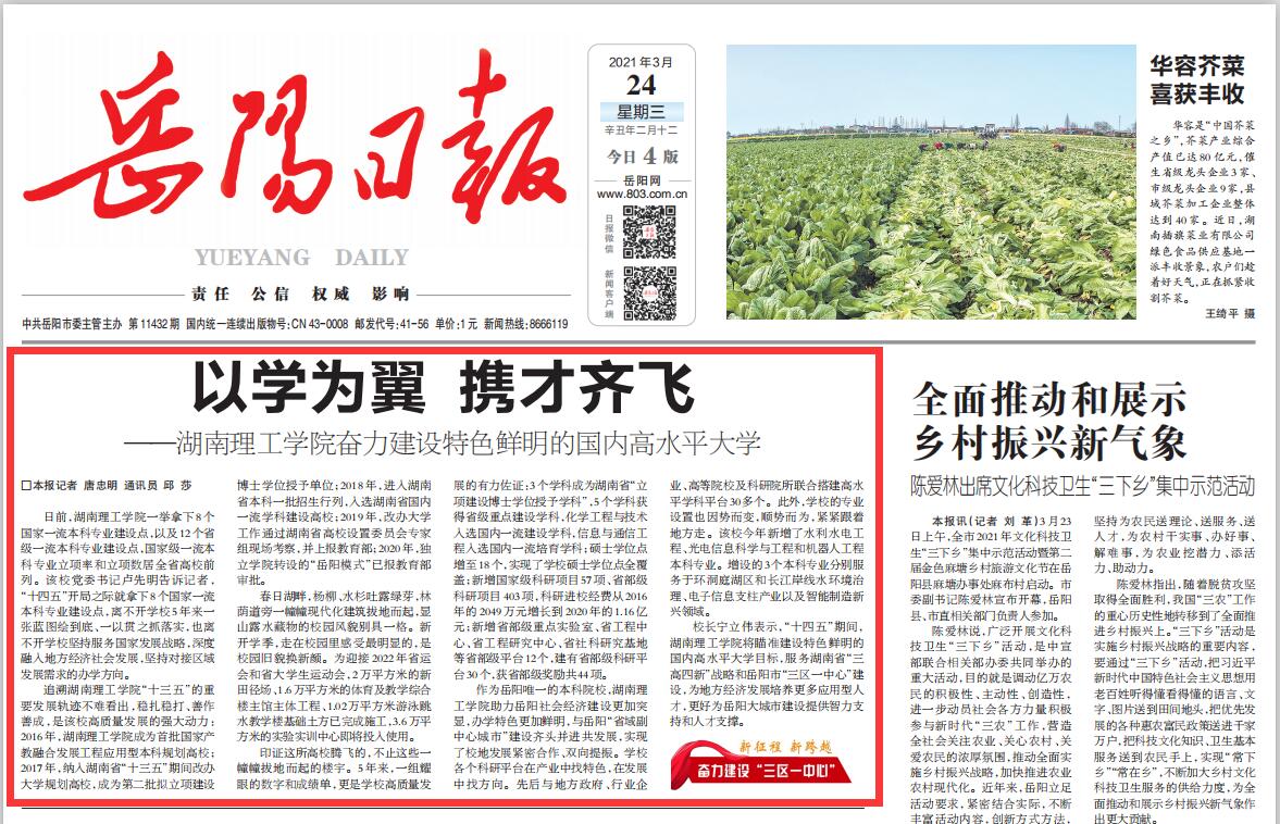【喜迎党代会】岳阳日报:湖南理工学院奋力建设特色鲜明的国内高水平大学
