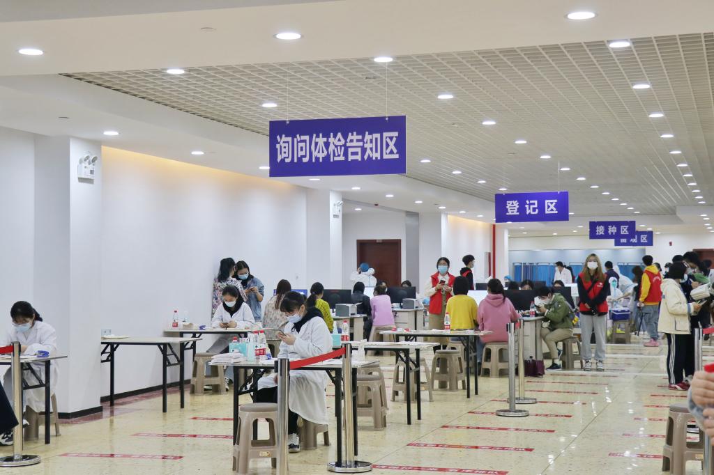 现场共分为等候区、询问体检告知区、登记区、接种区和留观区五个区域
