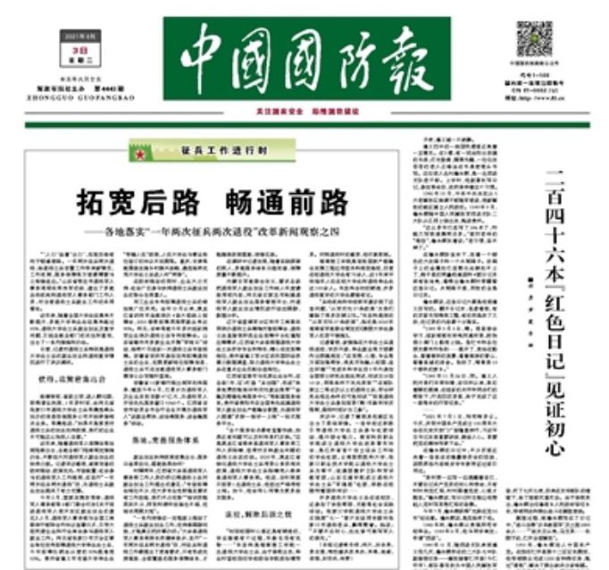 《中国国防报》头条报道我校在退役大学生士兵教育管理服务方面的工作及成效