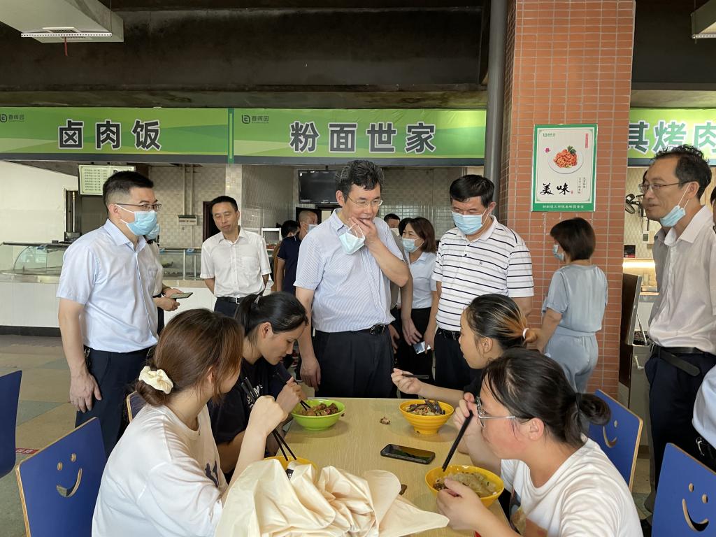 “第一天回到学校,学校食堂的饭菜是否可口?对食堂有一些建议也可以积极向食堂管理人员提出。”在学校一食堂,卢先明、宁立伟与首日返校就餐的学生们亲切地交谈,详细询问他们返校后的就餐情况,并查看了防疫设施设备及窗口供应菜品等情况。