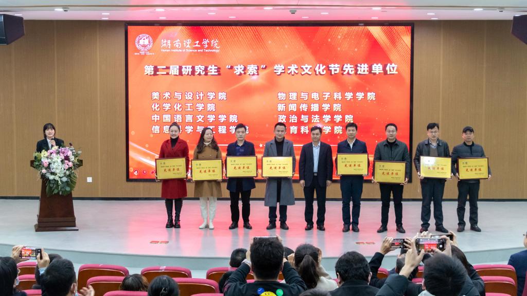 副校长汤小红为第二届研究生“求索”学术文化节先进单位颁奖