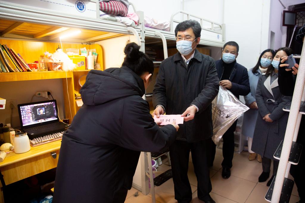 校党委副书记、校长宁立伟走进化学化工学院学生寝室,看望慰问学生,并发放慰问金