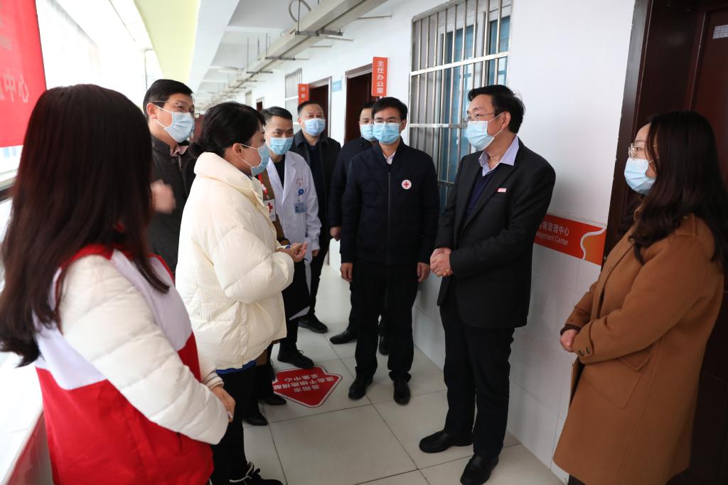 省红十字会副会长代贺龙,省造血干细胞捐献者资料库主任张赞,市政协副主席、市卫健委副主任任浩波,及学校校长宁立伟、学工部、化工学院负责人一行看望慰问黄宇航同学