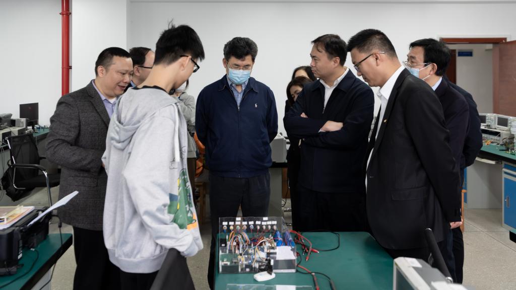 党委书记卢先明、校长宁立伟陪同杨漾一行参观燃料电池等重点实验室