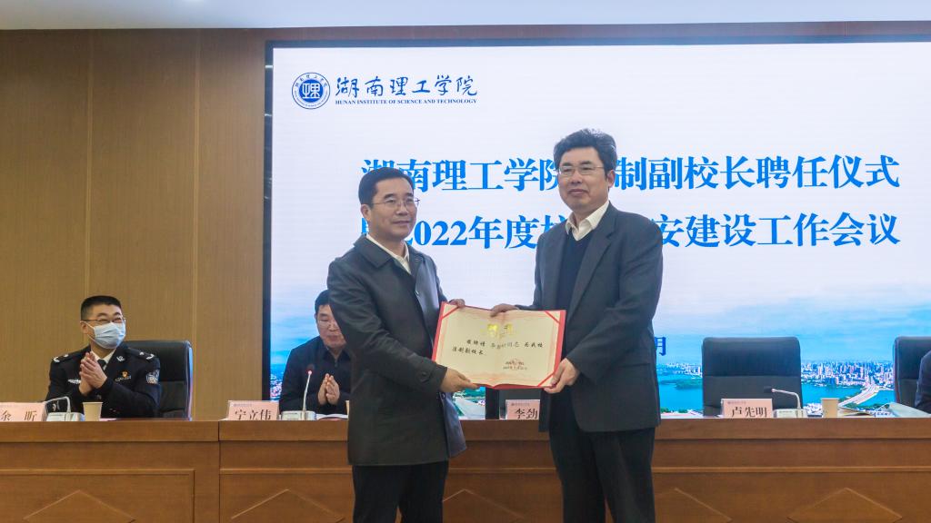 岳阳市人民政府党组成员、副市长、岳阳市公安局党委书记、局长李劲松,岳阳市人民政府副秘书长胡巍,岳阳楼区人民政府副区长、岳阳楼区公安分局局长余昕出席会议,校党委书记卢先明,党委副书记、校长宁立伟,副校长徐振祥,各职能部门、各学院负责人参会。会议由宁立伟主持。