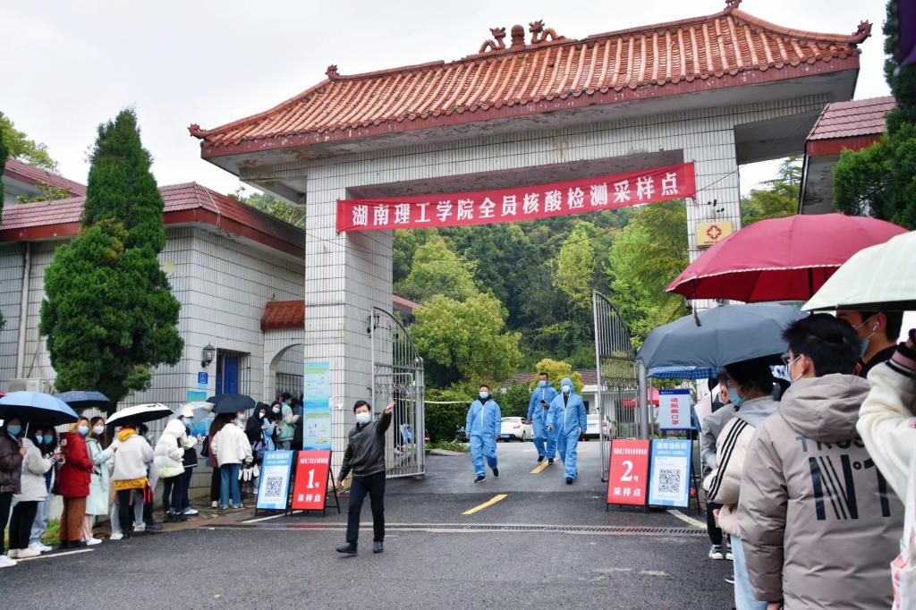 在开展全员核酸检测前,我校疫情防控领导小组积极联络岳阳市卫健委专家,制定采样工作方案,确定采样场所,科学规划线路,合理安排工作人员。本次核酸检测覆盖面广、时间跨度大、检测人数多,医护工作人员任务重压力大。在人事处等部门号召、统筹下,近100名教职工承担起信息录入、健康码核验、现场引导等核酸检测志愿工作。26日上午,校长宁立伟走访学校的核酸检测点,重点察看了核酸采样点核酸采集人数、医护人员防护、采样进展等情况。