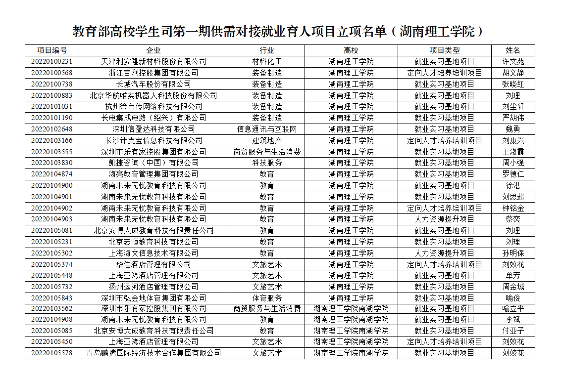 此次立项项目合作企业包括吉利控股、长城汽车股份等知名企业,涉及材料化工、装备制造、信息通讯与互联网、科技服务、教育、文旅艺术等7个行业。学校将同合作企业共同推动项目实施,加强项目过程管理,确保项目进展顺利,并以此为契机,积极推动就业与培养有机联动、人才供需有效对接,营造良好的就业育人氛围,促进我校毕业生更高质量就业。