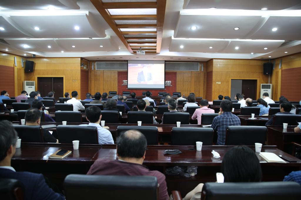 学校在办公楼214设视频分会场,党委书记卢先明,党委副书记、校长宁立伟等全体在家校领导及各二级单位党政负责人参会。