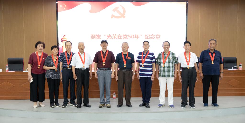 “光荣在党50年”纪念章获得者留影