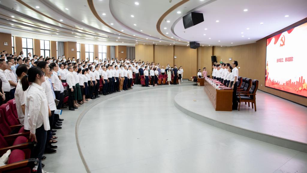 大会在庄严肃穆的国歌声中拉开序幕,卢先明带领全体党员重温入党誓词。