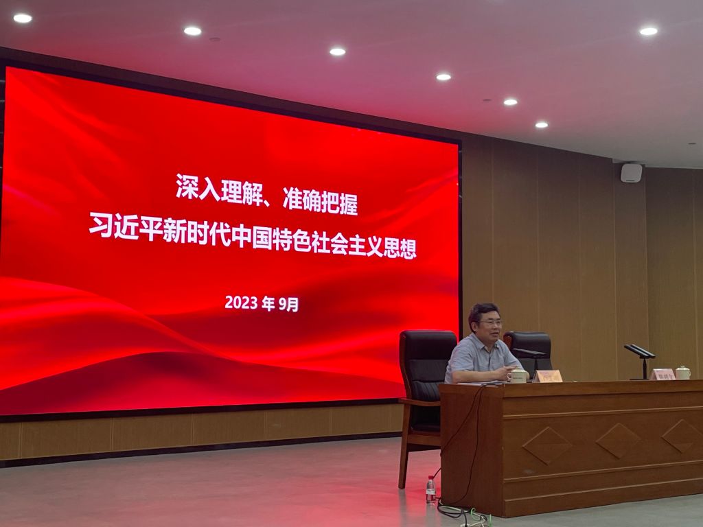 卢先明以“深入理解、准确把握习近平新时代中国特色社会主义思想”为题,从理论框架体系、时间空间维度、方法论与高校实际四个方面,系统解读了习近平新时代中国特色社会主义思想的科学体系、核心要义与实践要求。卢先明指出,习近平新时代中国特色社会主义思想是一个系统全面、逻辑严密、内涵丰富、内在统一的科学理论体系,必须融会贯通、全面理解、整体把握。他强调,要正确处理好保发展和保民生、保发展和保安全、学校发展和服务社会、质量和规模、抢抓机遇和墨守成规、眼前利益和长远利益、个人利益和集体利益、部门利益和学校利益、有所作为和有所不为的关系,加强基层党组织建设,为推进学校各项事业发展提供政治保证、思想保证与组织保证。