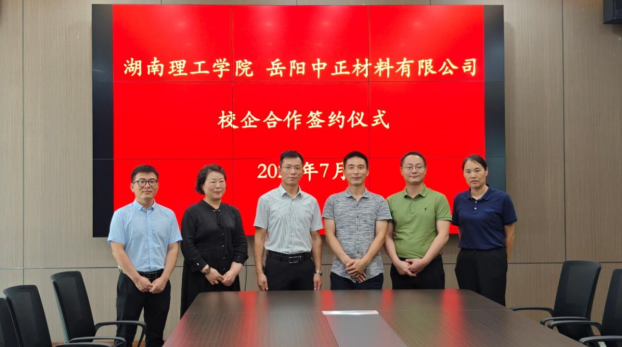 (物理与电子科学学院与岳阳市中正材料有限公司举行校企合作签约仪式。)