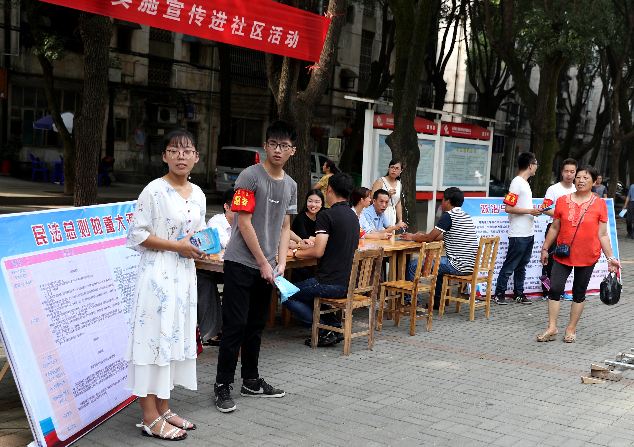 (法学院师生组织开展《民法总则》宣传进社区活动。)