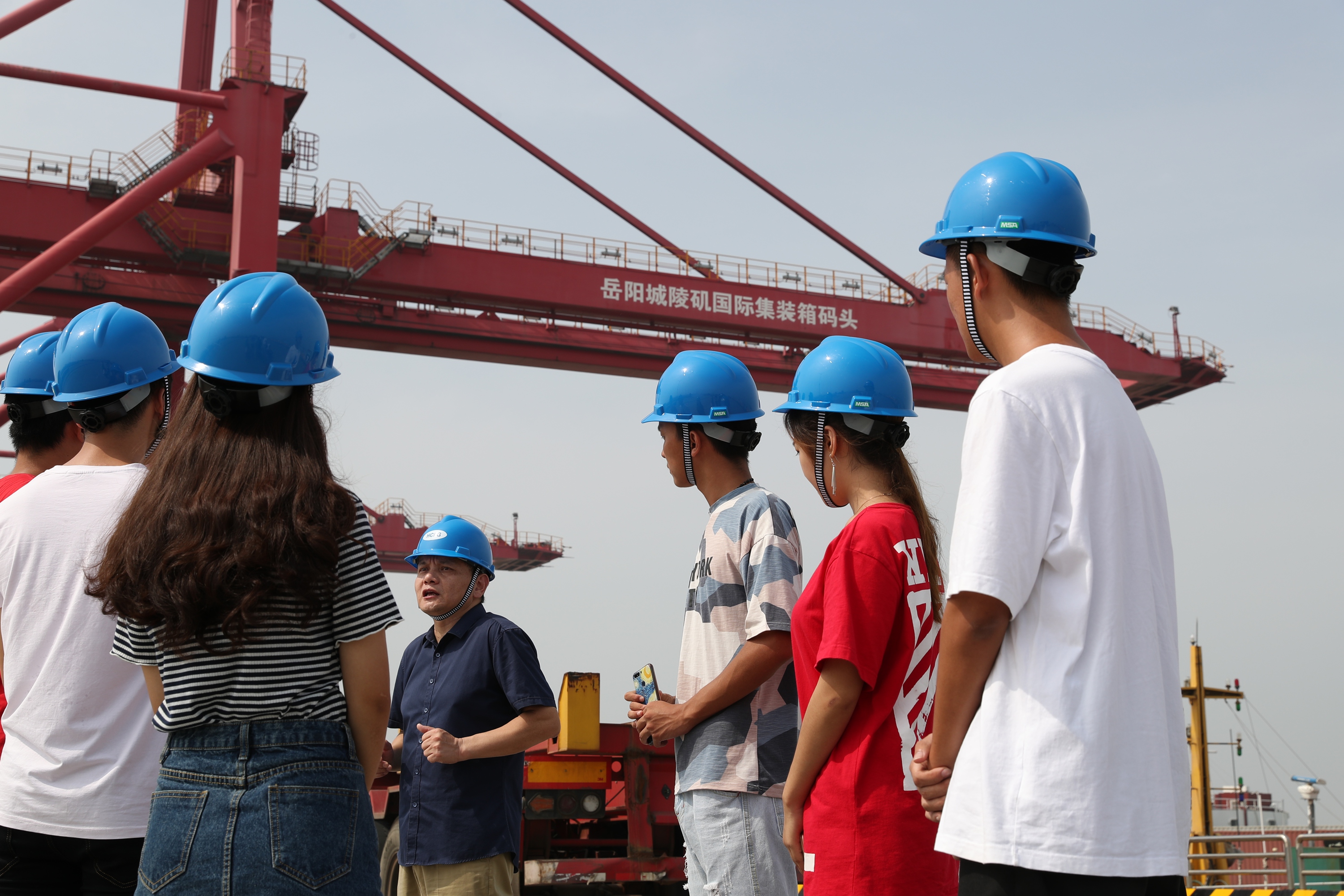 (经济与管理学院师生前往岳阳城陵矶国际集装箱码头参观考察。)