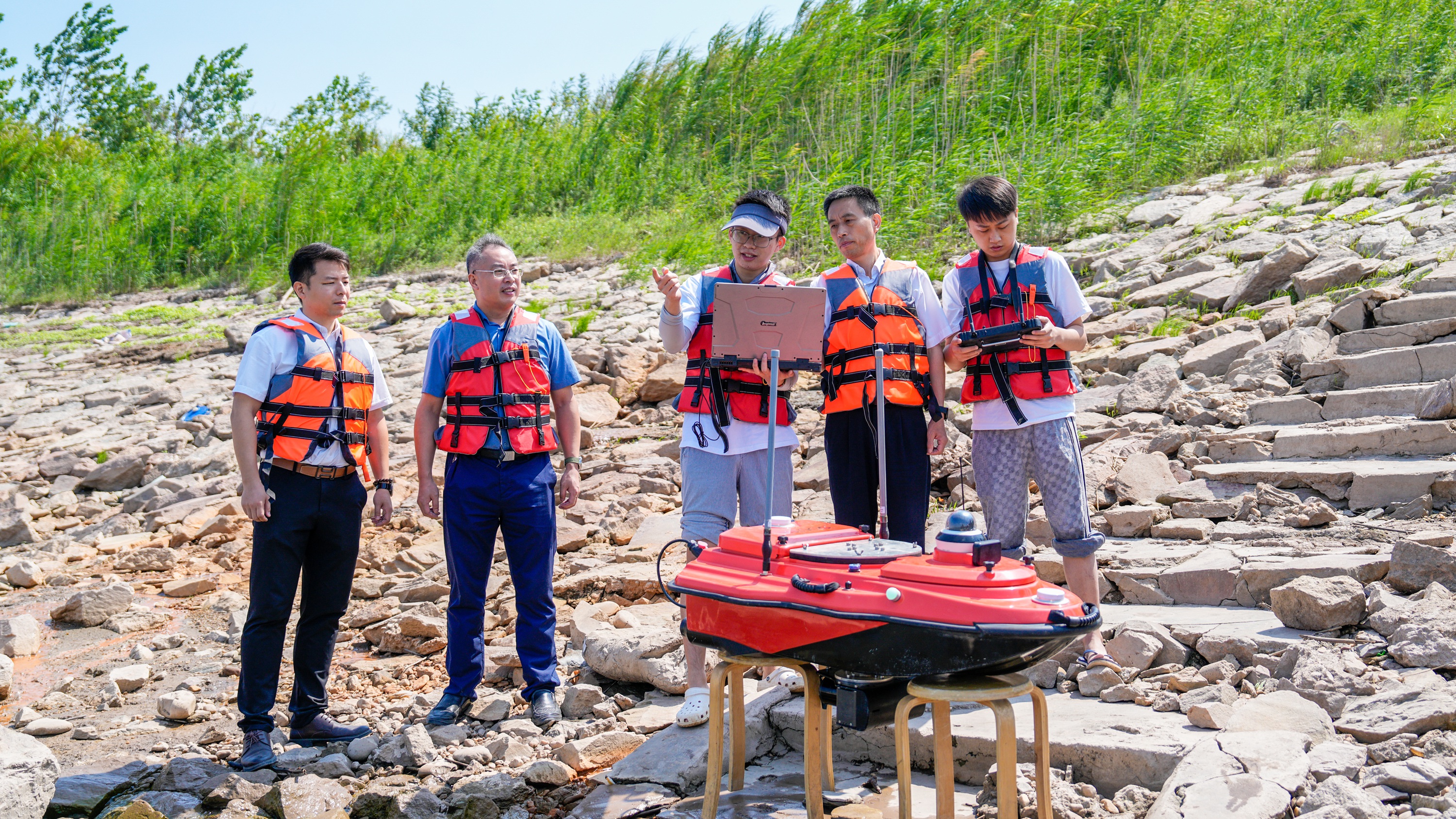 (信息科学与工程学院张国云教授团队在长江七弓岭段开展堤岸监测。)