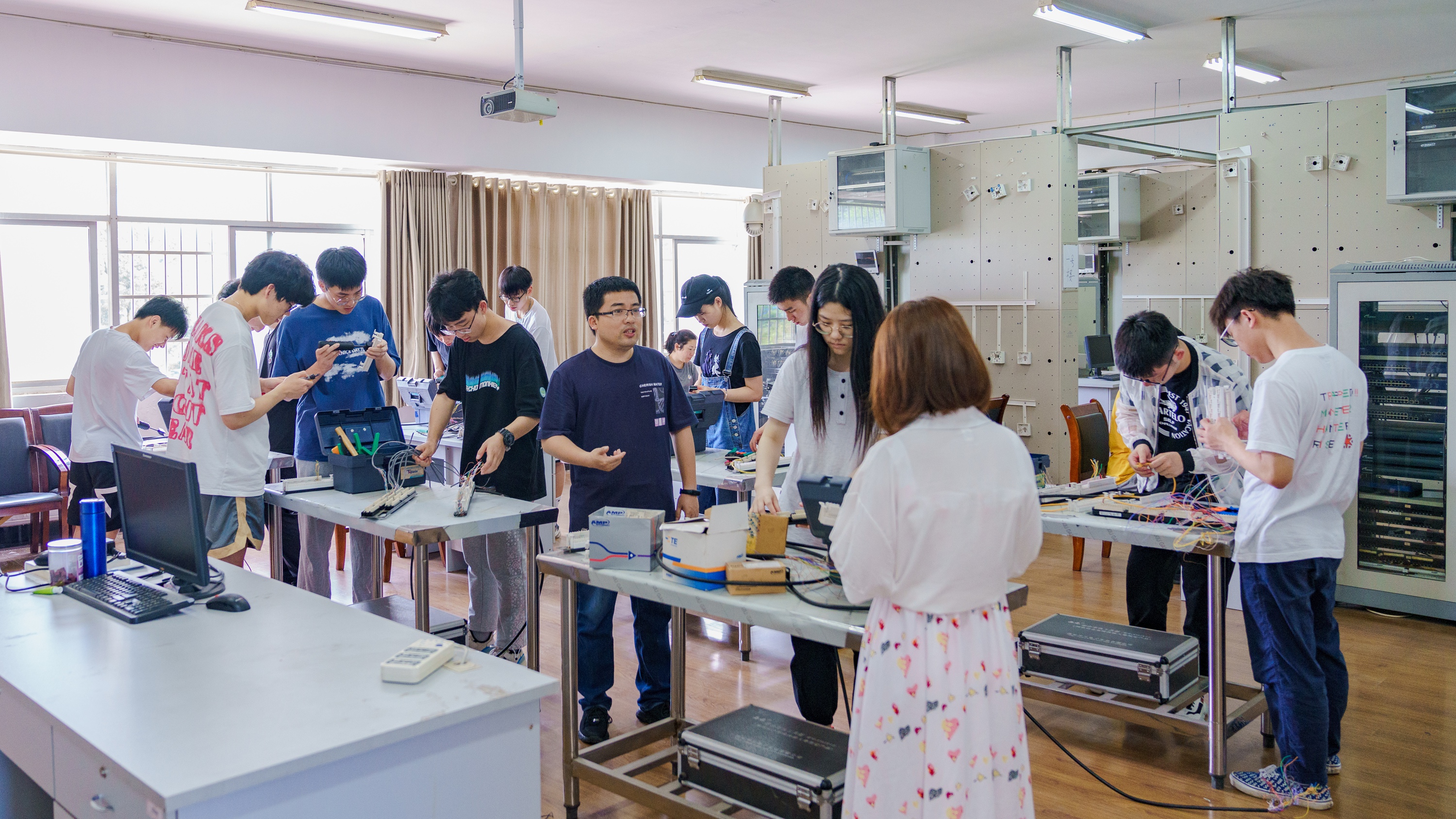 (信息科学与工程学院师生在实验室工作场景。)