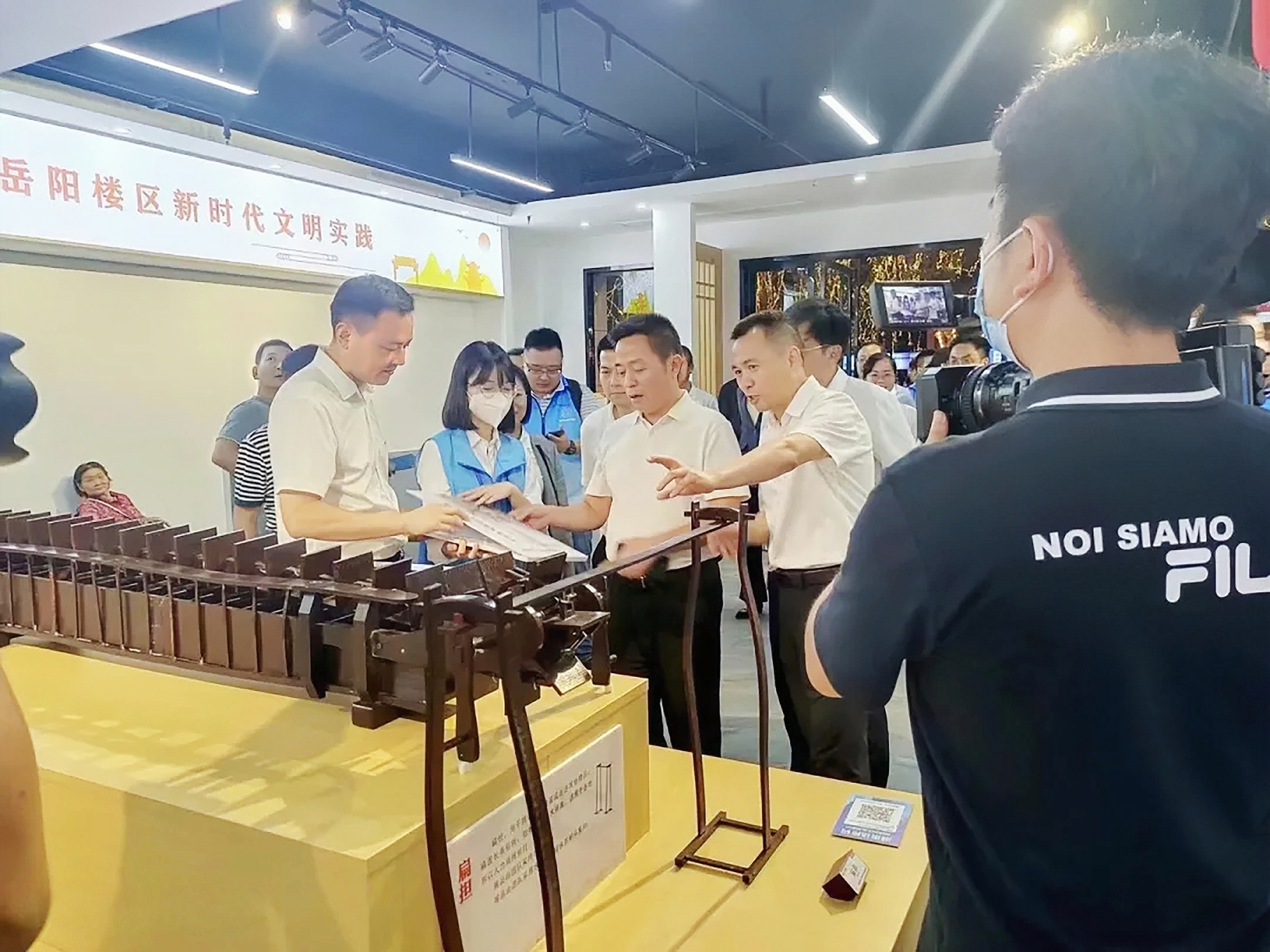 (机械工程学院学生开展新时代文明实践活动,展示传统农具的现代育人价值。)