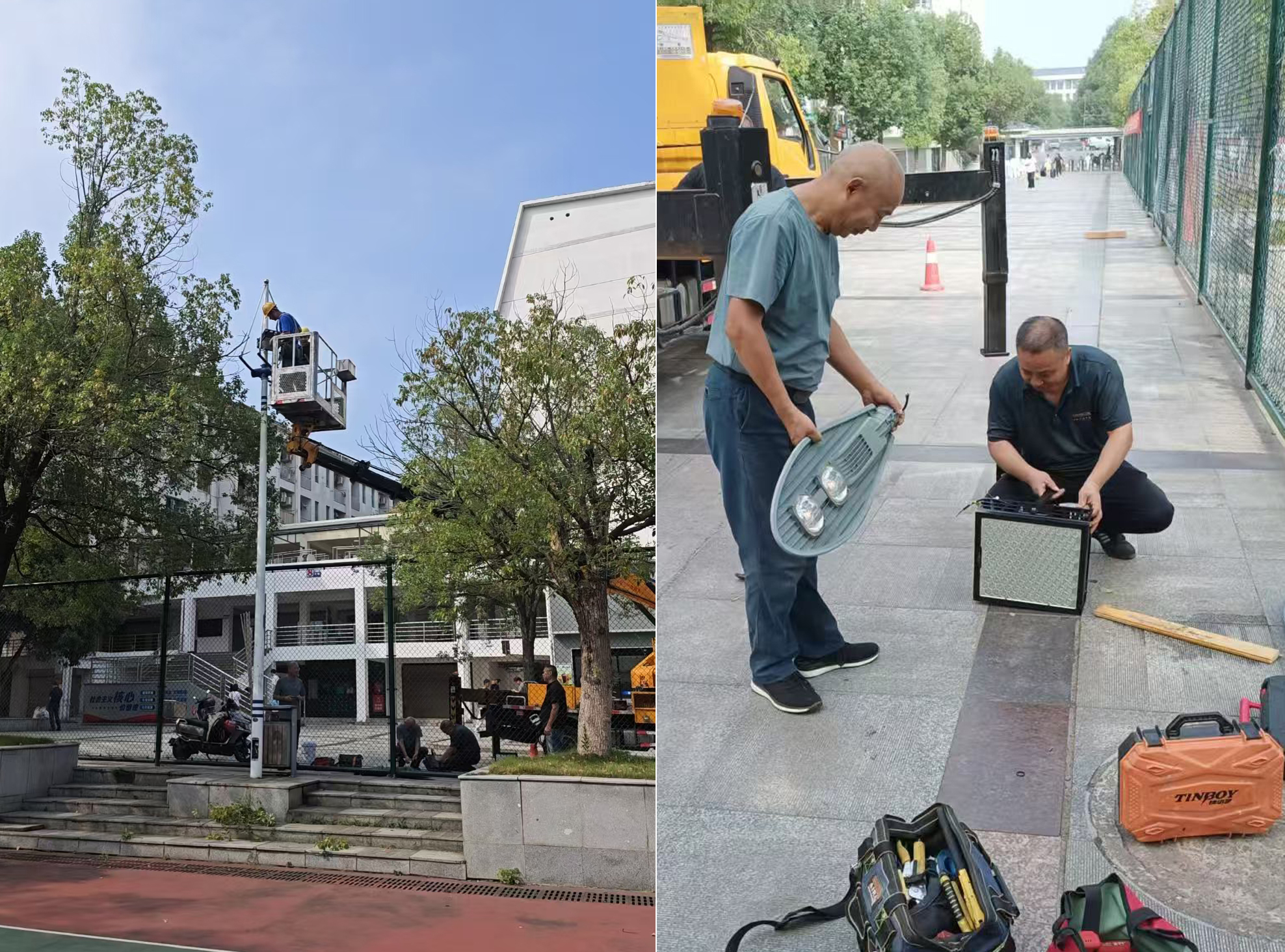 针对“3、5号教学楼等30间教室没有空调,风扇老化”的问题,学校在10月2日至7日期间,迅速完成了30台5P格力空调的安装工作,同时拆除了所有教学楼教室老化的风扇。此外,还拆除了12号教学楼教室影响通风效果的窗户限位器,为师生创造了更加舒适的学习环境。针对“6号教学楼T-1、T-2等部分教室座椅破损维修不及时”的问题,在10月2日至7日期间,组织对破损的座椅进行了全部拆除并安装新座椅,为教学活动的正常开展提供了保障。针对“户外篮球场灯光较暗、操场运动场所灯光差”的问题,学校已在国庆期间购置户外篮球场专用照明灯具,并于10月8日开始现场安装,预计10月10日正式投入使用,将有效改善师生夜间体育锻炼条件。