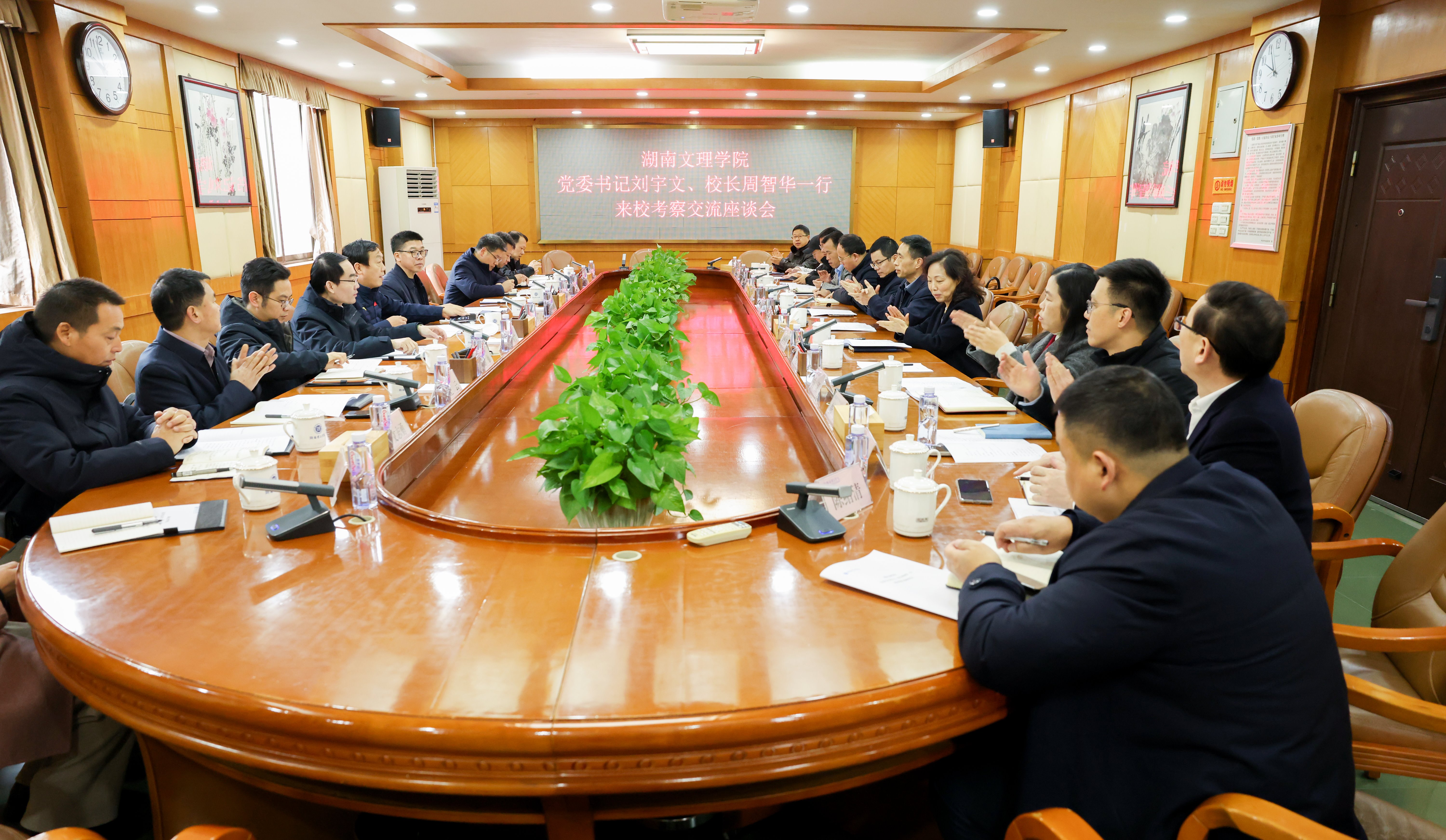 湖南文理学院党委书记刘宇文、校长周智华一行来校考察交流座谈会举行