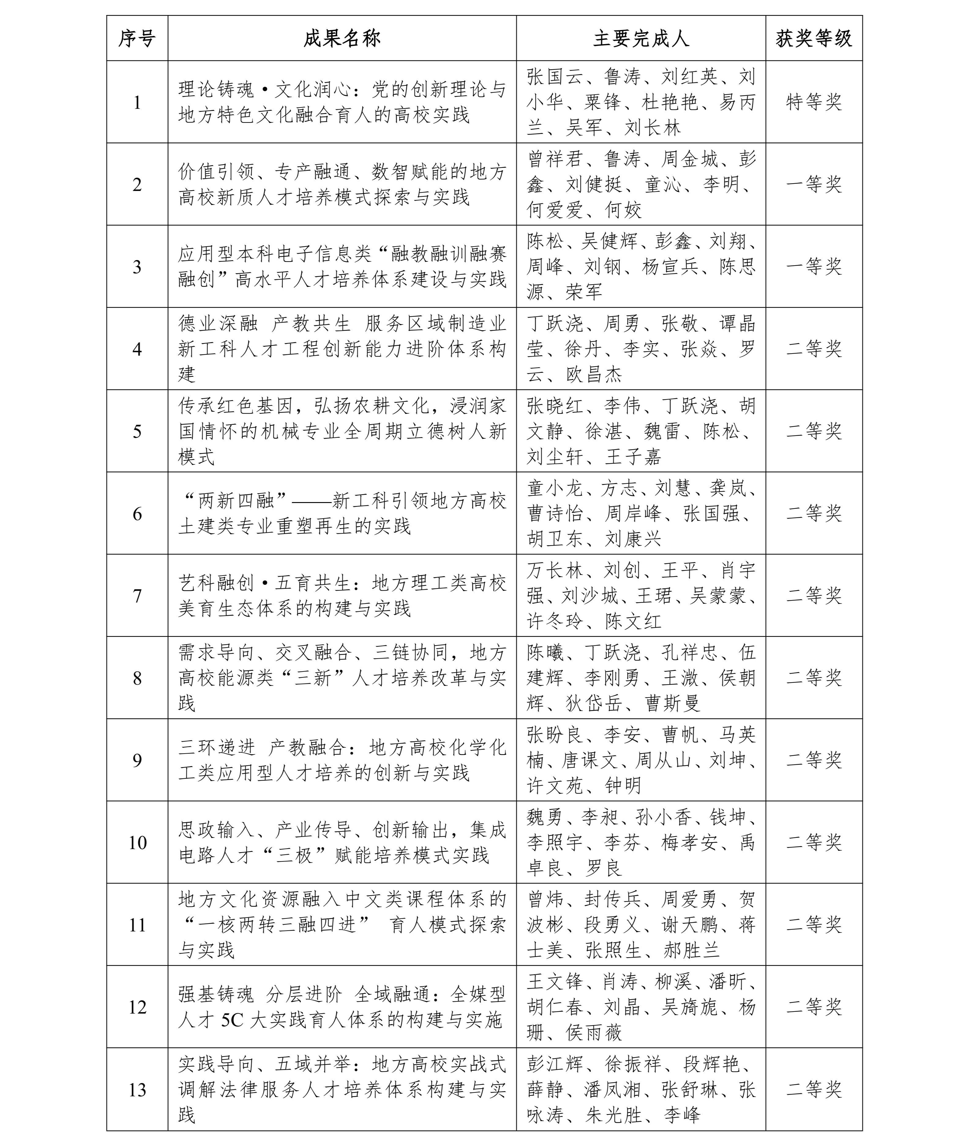 校园网讯 近日,湖南省教育厅公布了2025年湖南省高等教育教学成果奖获奖名单,我校作为第一完成单位荣获13项高等教育教学成果奖,包括特等奖1项、一等奖2项、二等奖10项,获奖等级与总数均创我校省级教学成果奖历史记录。