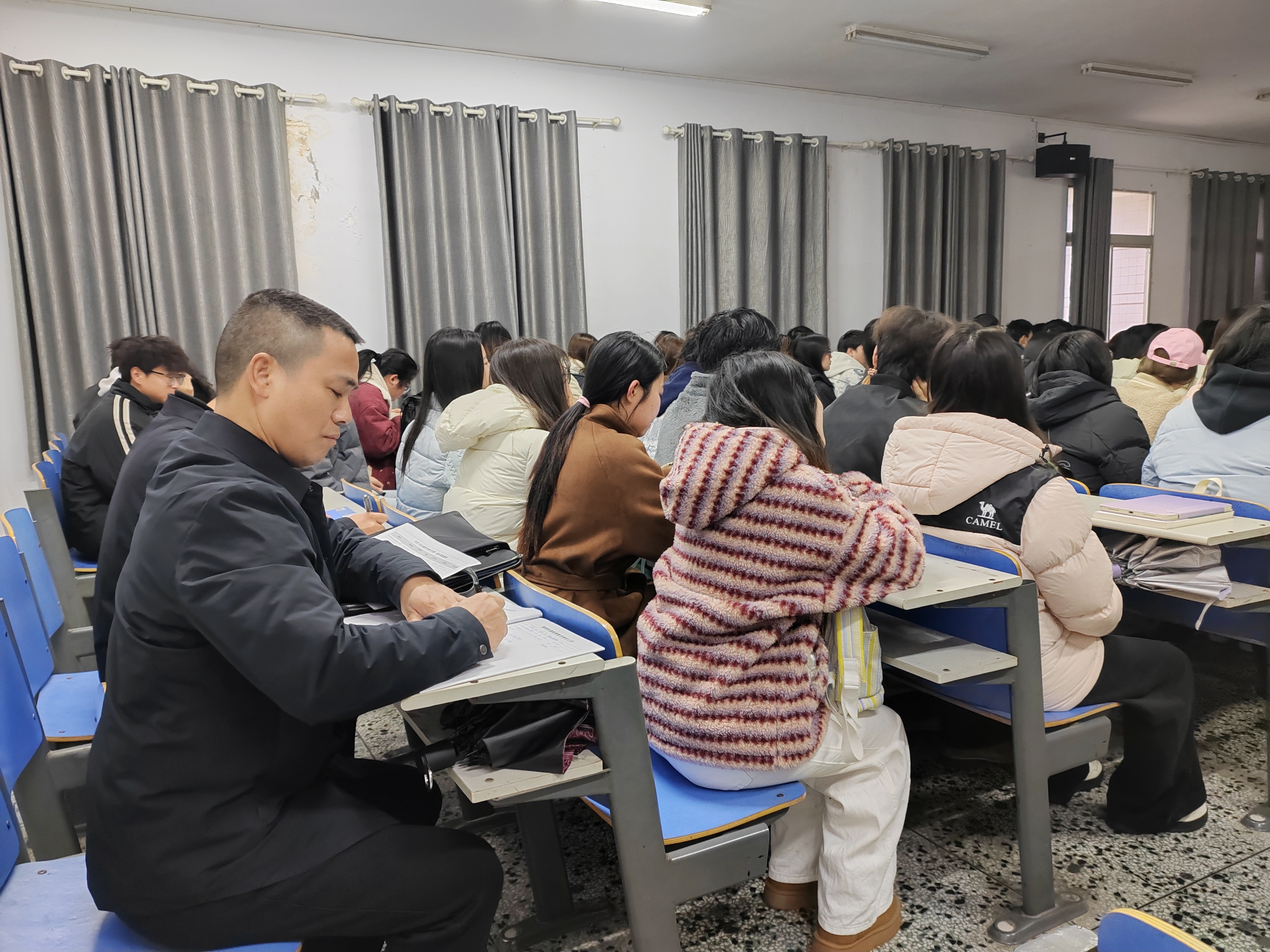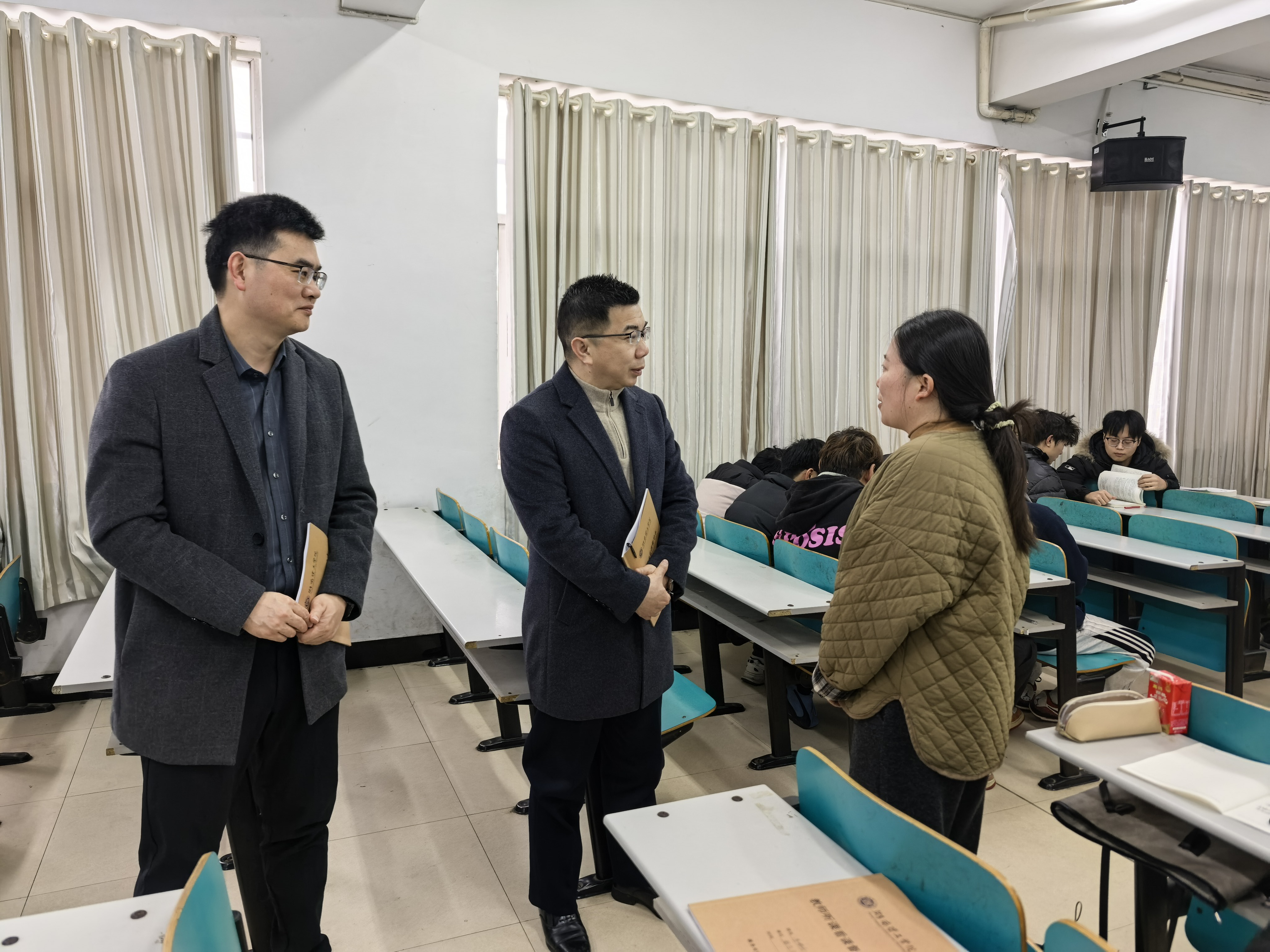 其他校领导分赴各教学楼开展随堂听课,覆盖机械、经管、法学、数学等多个学院,听取了《工业机器人本体设计》《税法》《中国近现代史纲要》等多门课程,并深入联系学院与师生面对面交流,详细了解教学保障、学生返校、学习生活等方面的情况,围绕专业建设、课程教学、改革提质等方面提出了具体建议。