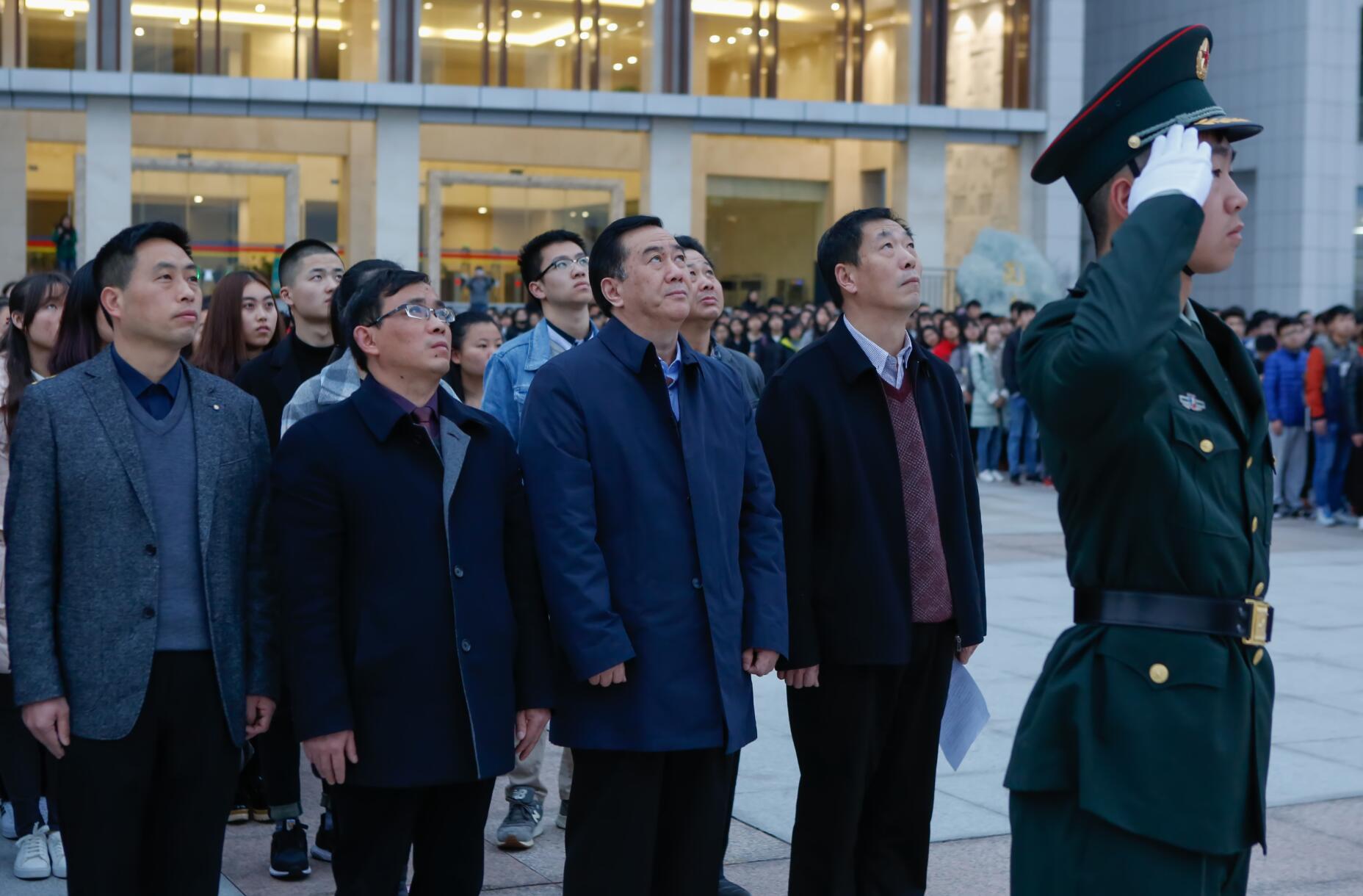 党委副书记邱绍雄在升旗仪式上发表讲话,勉励广大青年大学生珍惜韶光,刻苦读书,为实现中华民族伟大复兴中国梦,助力学校“创大”“申博”目标而努力奋斗。