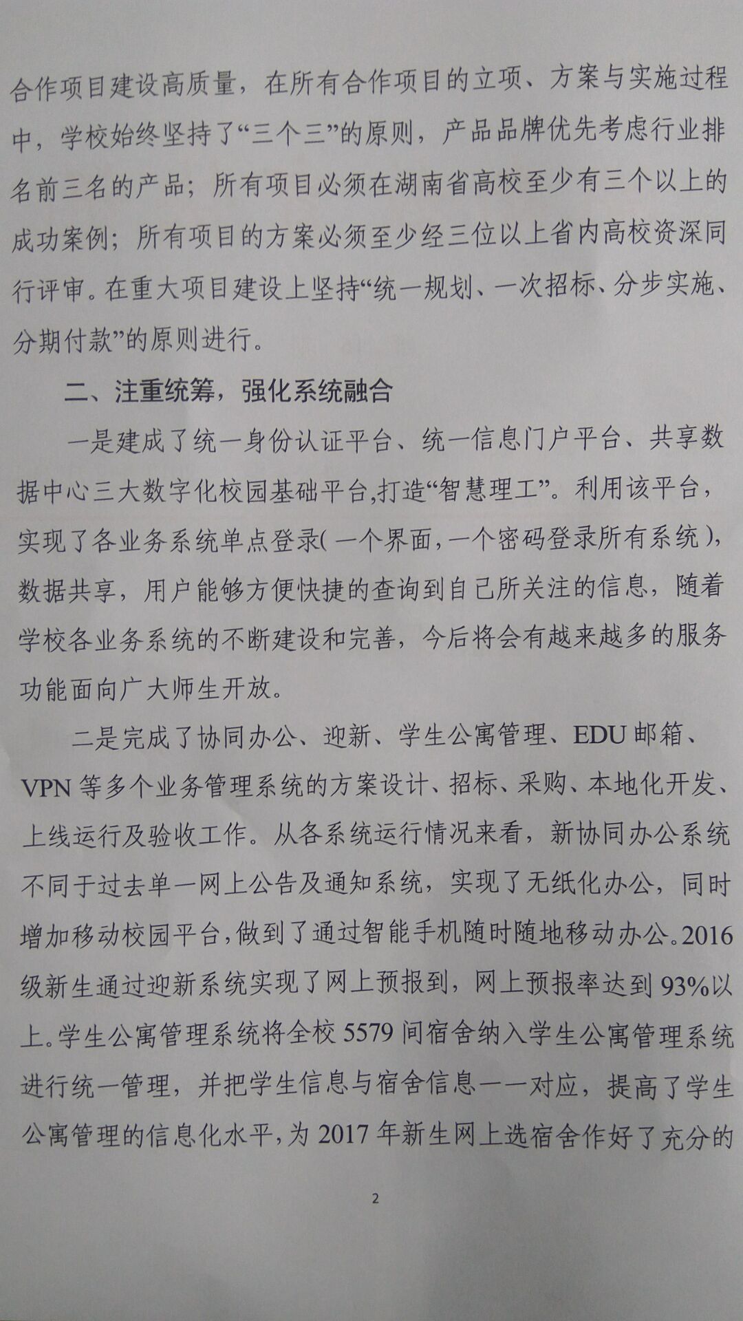 文章指出,学校与中国农业银行岳阳分行、中国联通公司开展校企合作,扎实推进智慧校园建设,为广大师生带来了极大便利,广大师生从智慧校园建设中有了更大获得感。