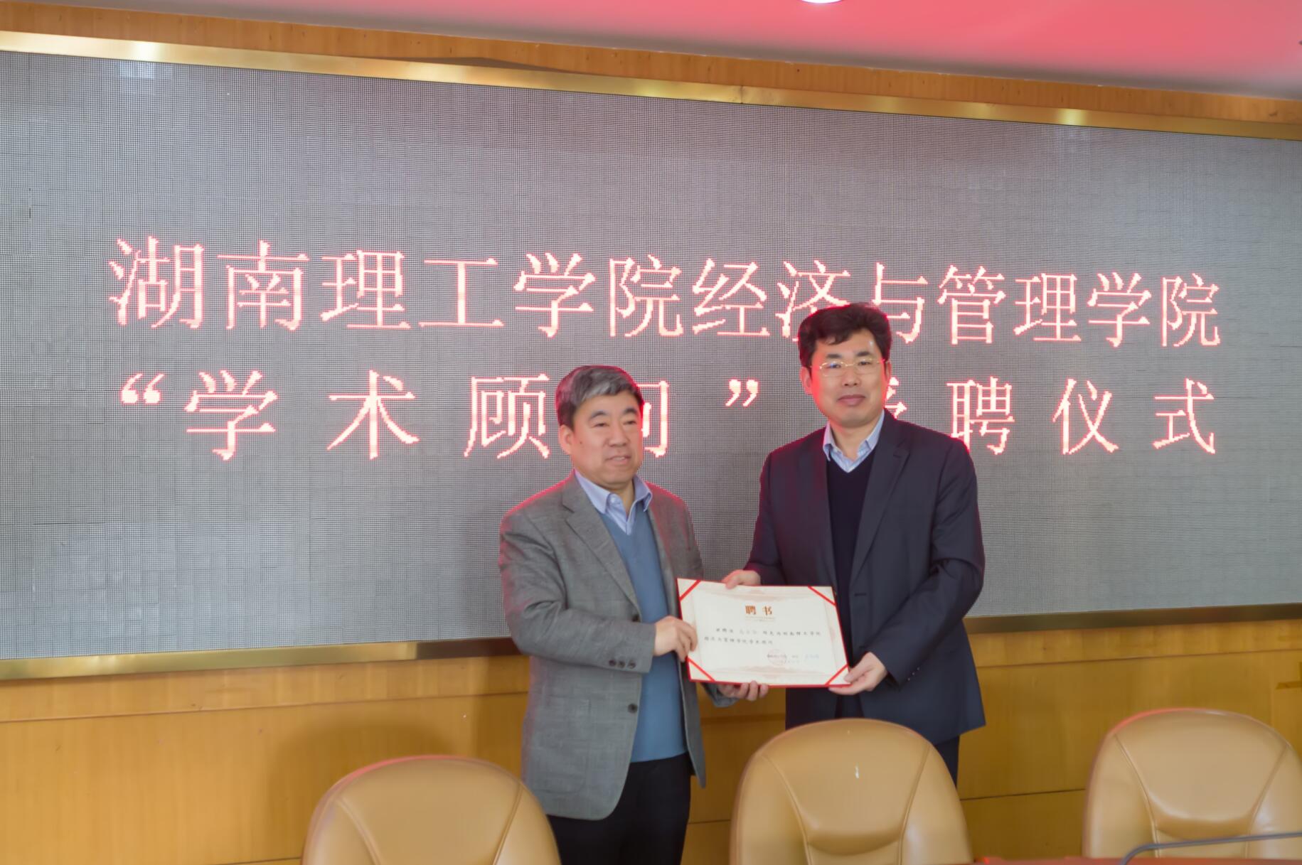 校园网讯3月27日上午,我校经济与管理学院学术顾问受聘仪式在办公楼319会议室举行,校长卢先明为华中科技大学马士华教授颁发聘书,党委书记李明、副校长张国云出席,副校长刘亦工主持受聘仪式。