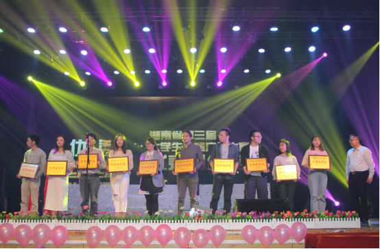校园网讯 5月9日下午,湖南省第三届大学生公益广告大赛颁奖典礼暨第四届启动仪式在湖南大众传媒职业技术学院举行,省委宣传部副部长、省文明办主任刘进能、省文明办副主任熊科文、省委教育工委宣传部部长曾力勤、省文明办创建指导处处长张志辉、省委教育工委宣传部副部长李林芳以及各获奖高校代表参加颁奖活动。