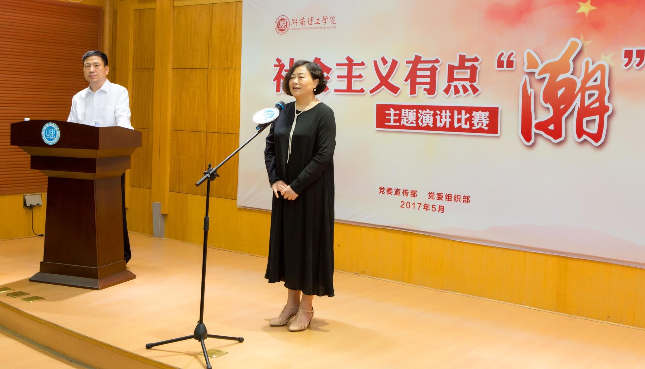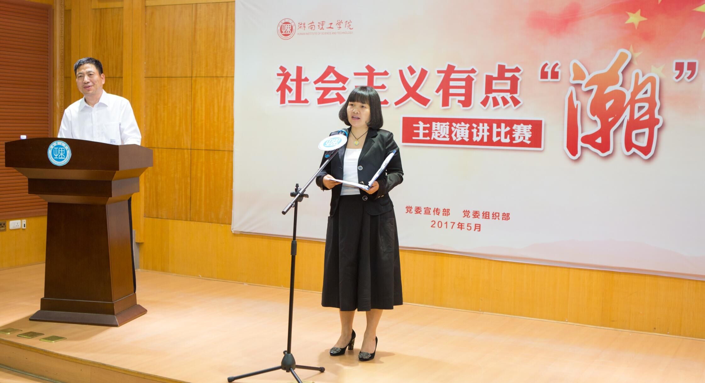 校园网讯 5月18日下午,为深入学习宣传贯彻习近平总书记系列重要讲话精神和治国理政新理念新思想新战略,进一步坚定中国特色社会主义“四个自信”,以浓厚的理论氛围、舆论氛围、文化氛围、社会氛围迎接党的十九大胜利召开,我校“社会主义有点潮”主题演讲比赛在1办公楼214会议室举行。党委书记李明,党委副书记邱绍雄,副校长刘亦工,党委委员、组织部部长刘创出席,第104期处干班全体学员参加。
