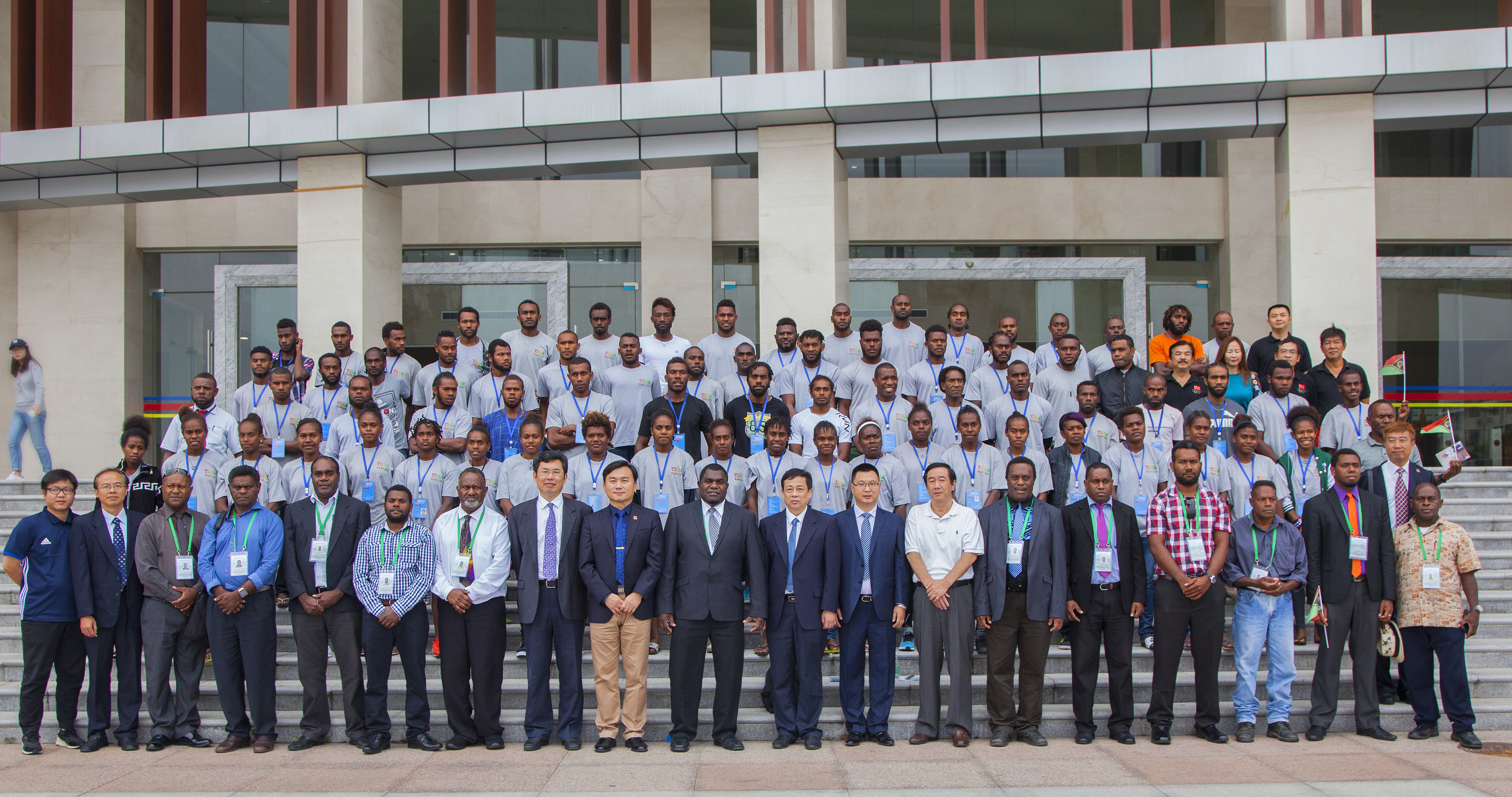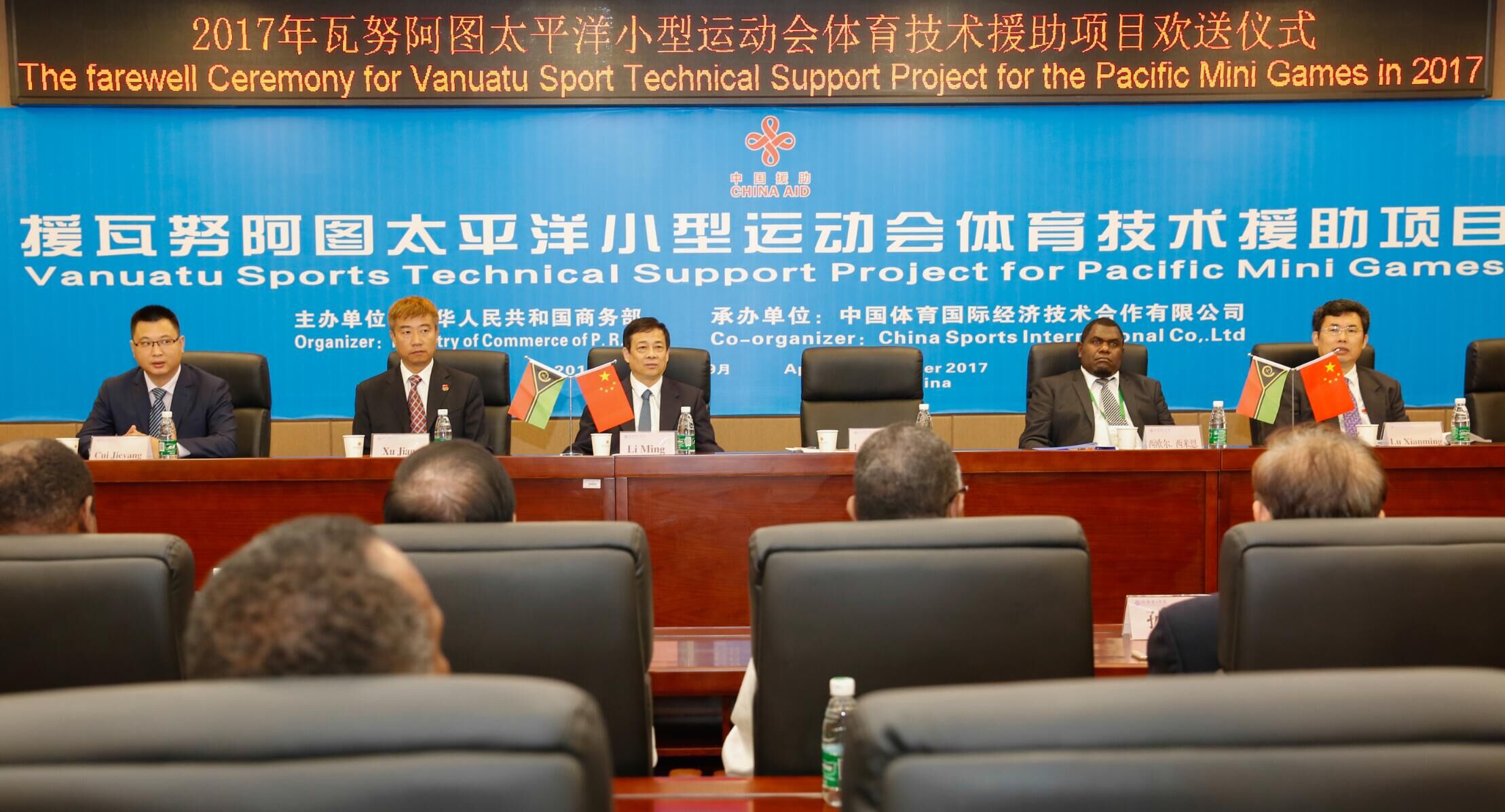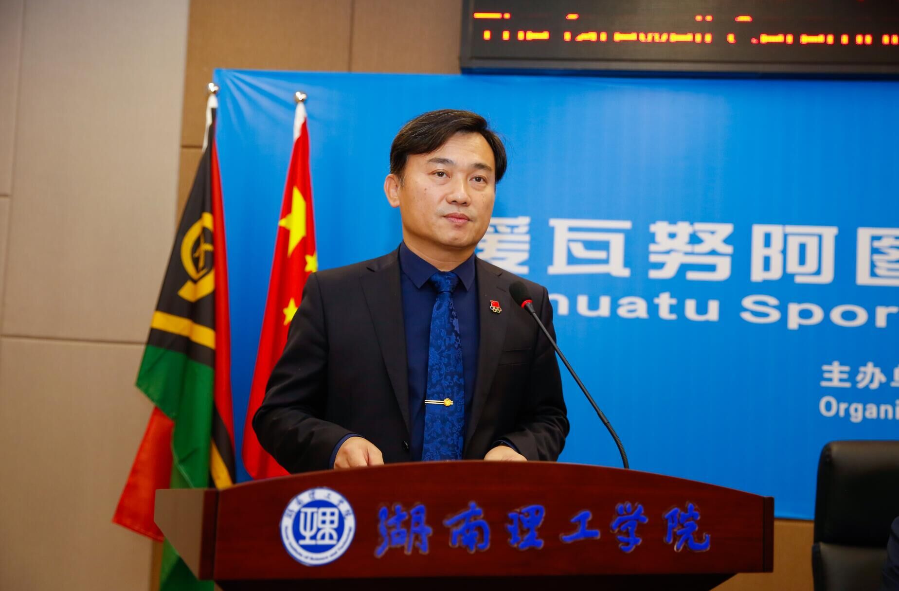 校园网讯 9月3日上午,2017年援瓦努阿图太平洋小型运动会体育技术合作项目欢送仪式在我校图书馆会议室隆重举行。中国体育国际经济技术合作有限公司总经理吕国光、瓦努阿图青年体育部部长Hon Seule Simon,学校党委书记李明、校长卢先明、副校长钟华以及瓦努阿图来华运动员出席本次活动,中国体育国际经济技术合作有限公司总工程师徐建担任活动主持人。