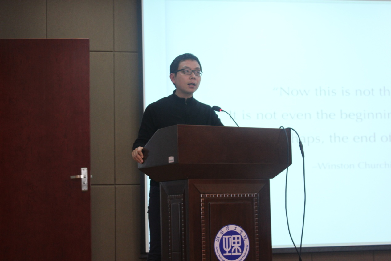 “你便会从依稀的梦中惊醒,将窗儿洞开,抛下面纱,走出房门,去迎接命运的安排”。王俊借一首泰戈尔的诗中片断拉开了讲座的序幕。他从“卡哈马卡战役”这段历史回顾中告诉师生要通过读书去了解这个世界,进而引出今天的主题:“人工智能”。他从机器人atlas和SportMini等视频分享中揭示出科技的进步带给人的冲击,机器在动力方面的巨大变化与新的智慧体的出现,激励人类不断学习创新。从几代AlphaGo的升级换代中揭示出“深度学习”的工作原理。同时结合《行为经济学》《行为博弈》《神经经济学》中的理论,指出深度学习革命的三个要素是硬件、数据和神经网络,并从李飞飞ImageNet之路的例子告诉大家得数据者得天下的道理。接着,王俊与师生们畅聊了自己在UCSD访学的经历,观看了他制作的小视频,分享了担任神经网络助教和学习摸索神经网络的小故事,他所讲的每一个鲜活的事例都让在场师生感到耳目一新,所涉及的全新领域开拓了大家的视野,他那种永不满足的学习精神也让大家感到由衷的佩服。最后,他希望大家能够将东方哲学智慧与西方的科学有机融合,去迎接新的思想和命运的挑战。在互动环节中,他还就“超级智能的出现”、“自学编程的途径方法”等问题与在座师生进行交流。他谦逊的态度,渊博的学识、生动的讲解赢得阵阵掌声。