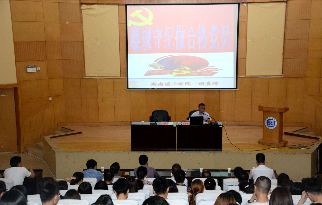 校园网讯 6月13日下午,在学校综合楼学术报告厅举办了南湖学院2018届毕业生党员教育培训会。学校党委委员、纪委书记谢贵辉为全体毕业生党员讲授了他们在母校的最后一堂党课,南湖学院全体院领导、各系党总支书记、各办负责人、学生支部书记、辅导员老师以及全体毕业生党员共160余人参加了这次会议。